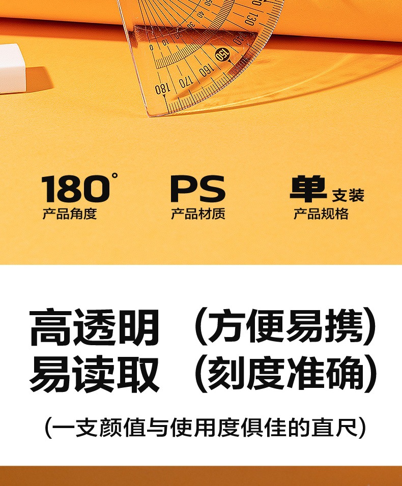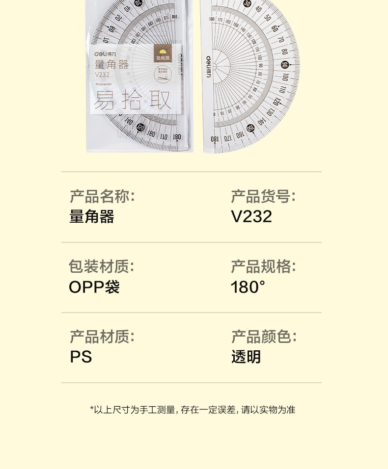 [신제품] 델리 V232 각도기 학생용 눈금자 쉽게 잡을 수 있는 투명 각도기 180도 그리기 눈금자스토어 가기