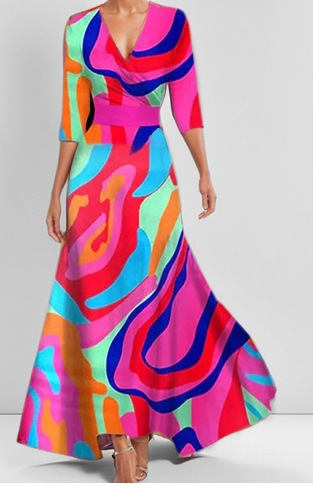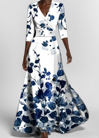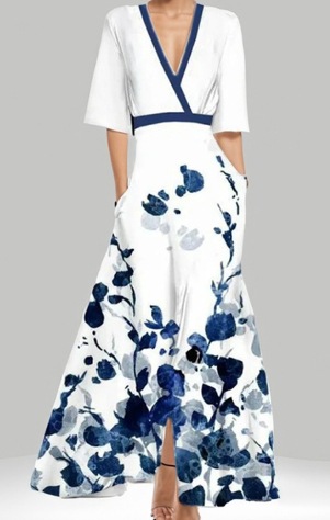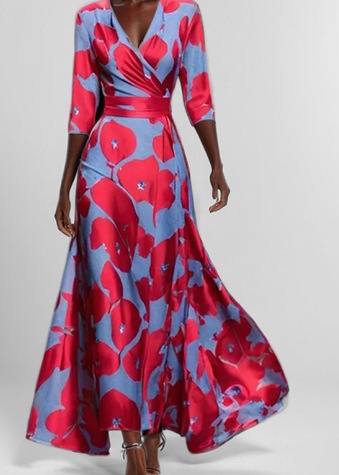 2025 유럽과 미국의 대외 무역 아마존 패션 우아한 기질 V-Neck 여성 인쇄 레이스 업 대형 스커트 원피스 여성스토어 가기