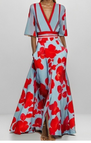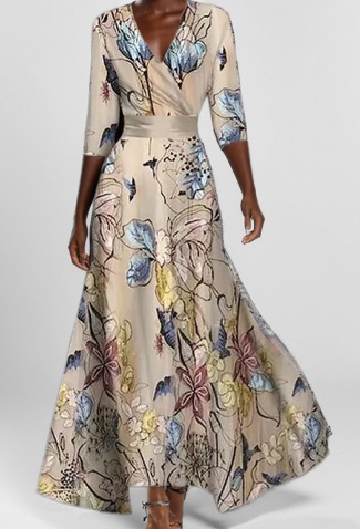 2025 유럽과 미국의 대외 무역 아마존 패션 우아한 기질 V-Neck 여성 인쇄 레이스 업 대형 스커트 원피스 여성