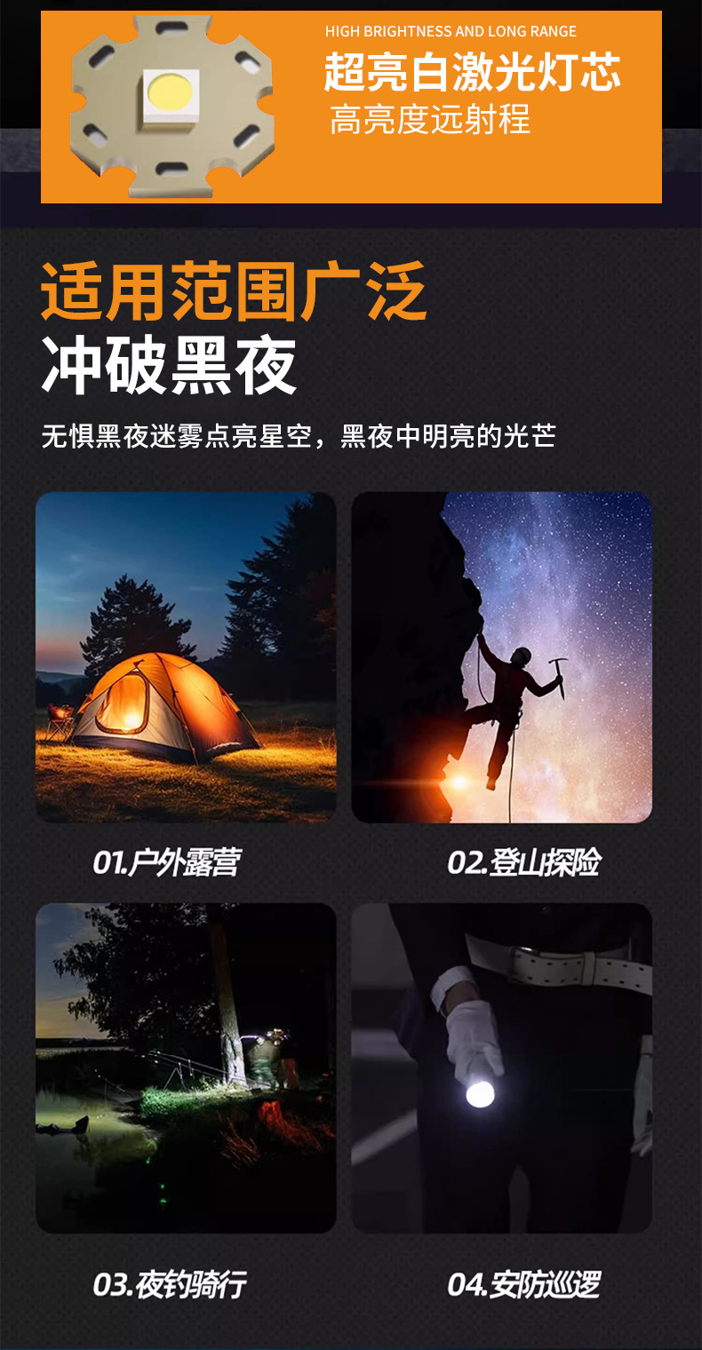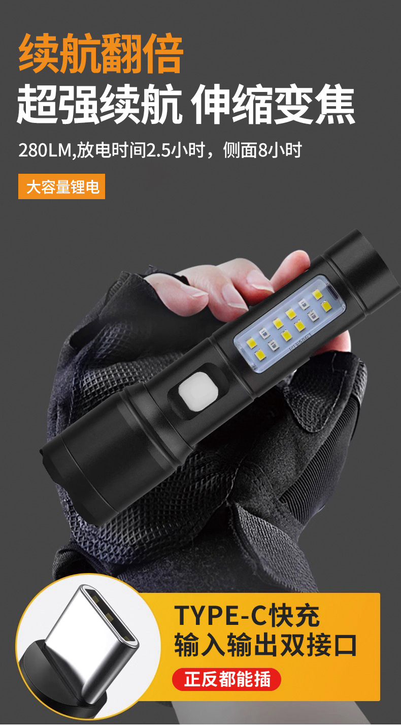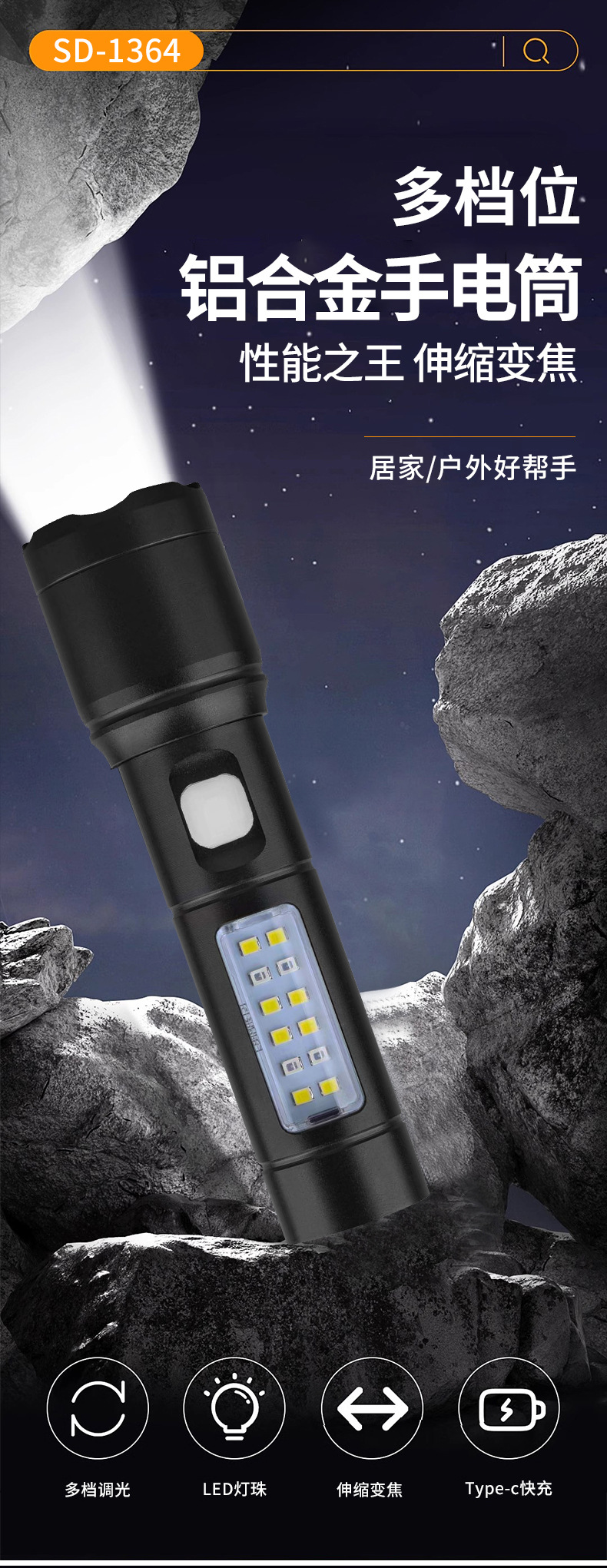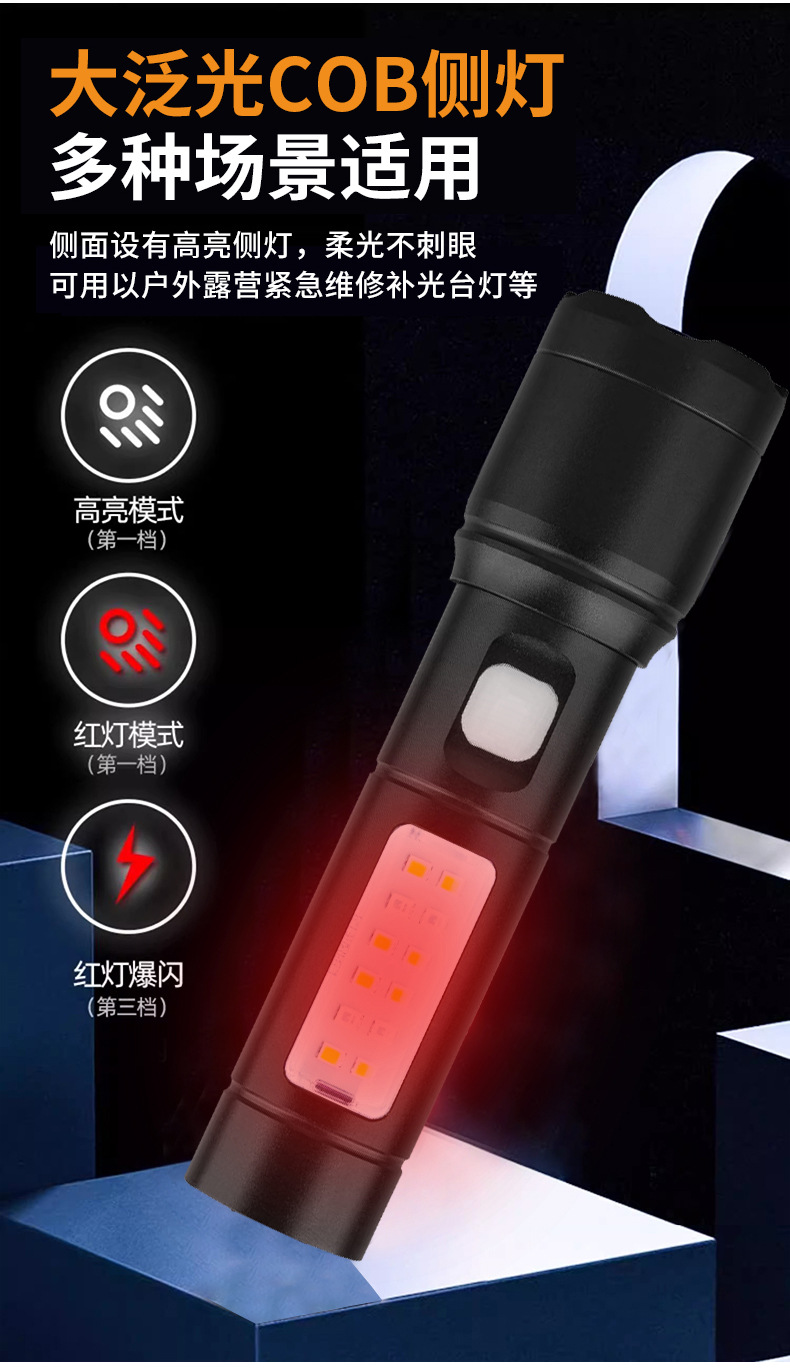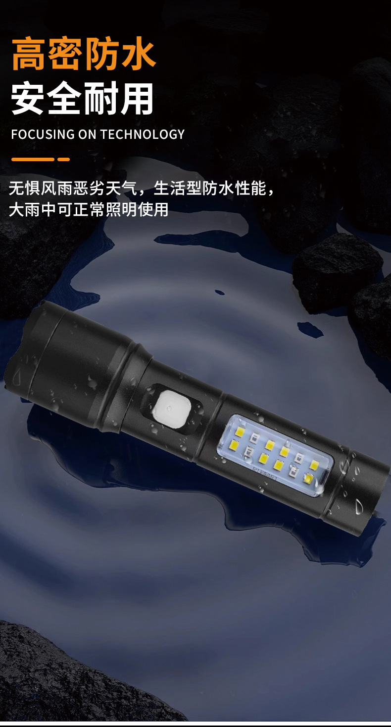 국경을 넘는 인기 상품, 긴 배터리 수명, 다기능 손전등, 야외 휴대용 비상 조명, 소형 강력한 조명, 장거리 손전등