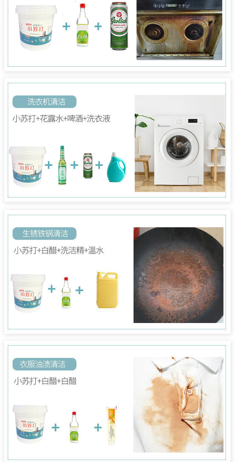 베이킹소다가루로 세탁, 기름때제거, 빨래솔, 신발, 주방스케일제거, 누런얼룩제거, 치아미백, 다목적 오염제거세정제