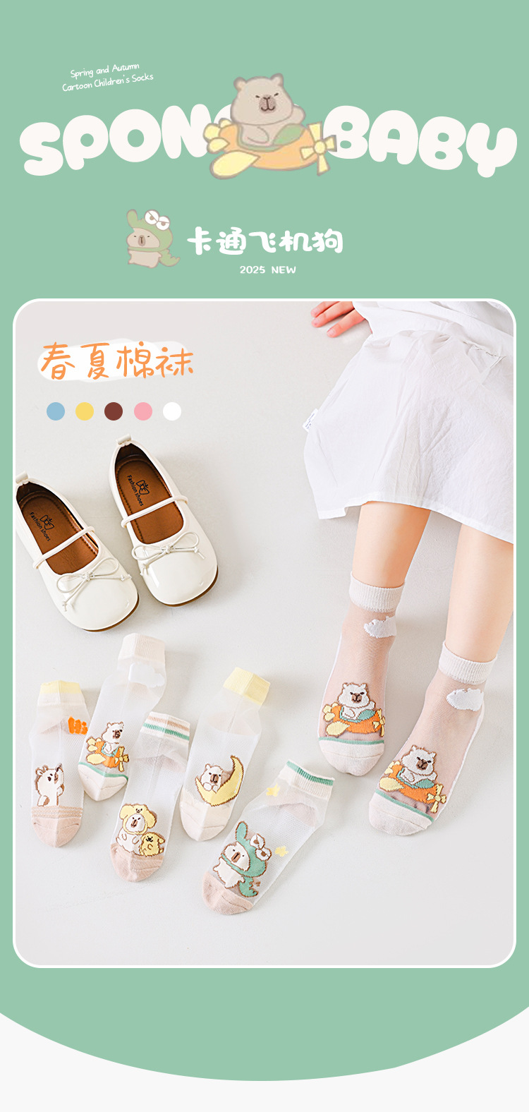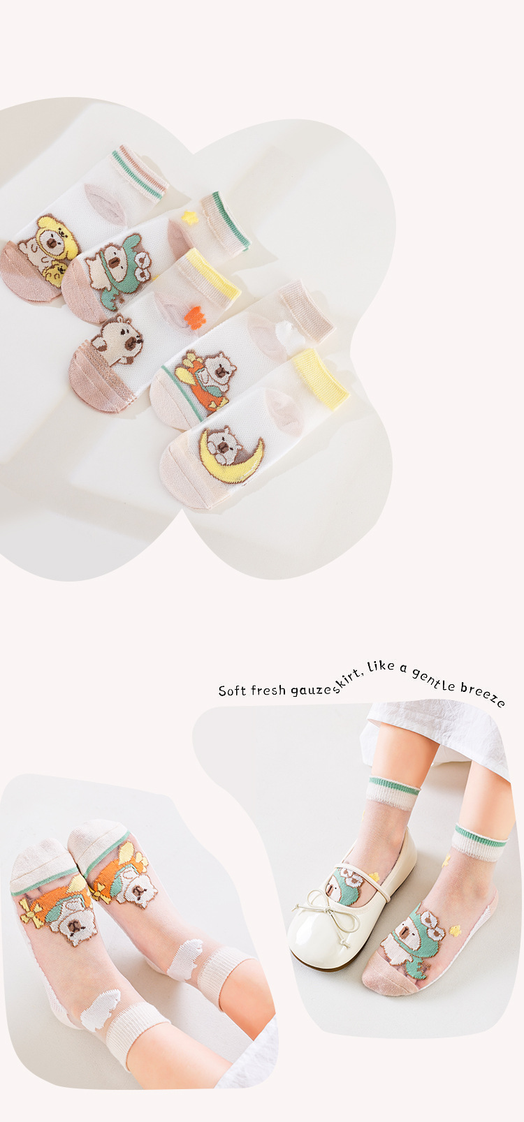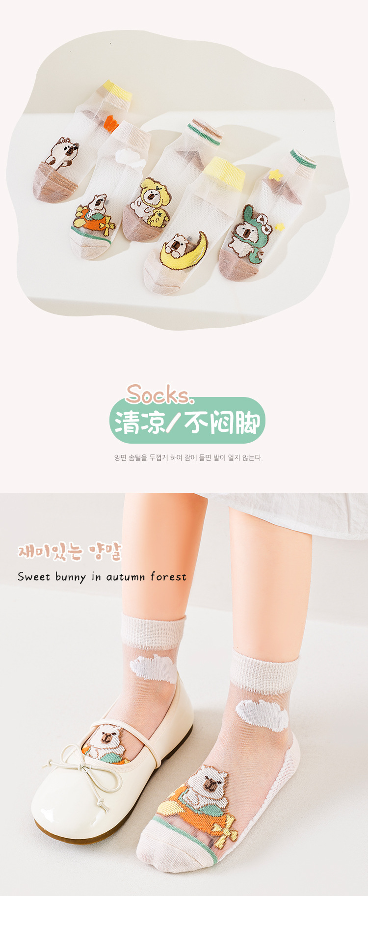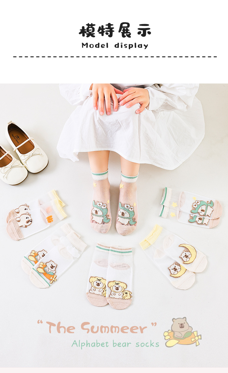 국경 카테고리 여름 얇은 어린이 양말 만화 메시 통기성 피트가 아닌 면화 양말 5 쌍 도매