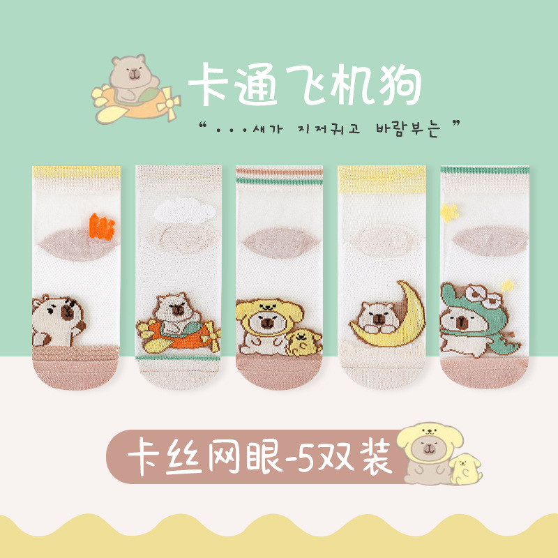 국경 카테고리 여름 얇은 어린이 양말 만화 메시 통기성 피트가 아닌 면화 양말 5 쌍 도매스토어 가기