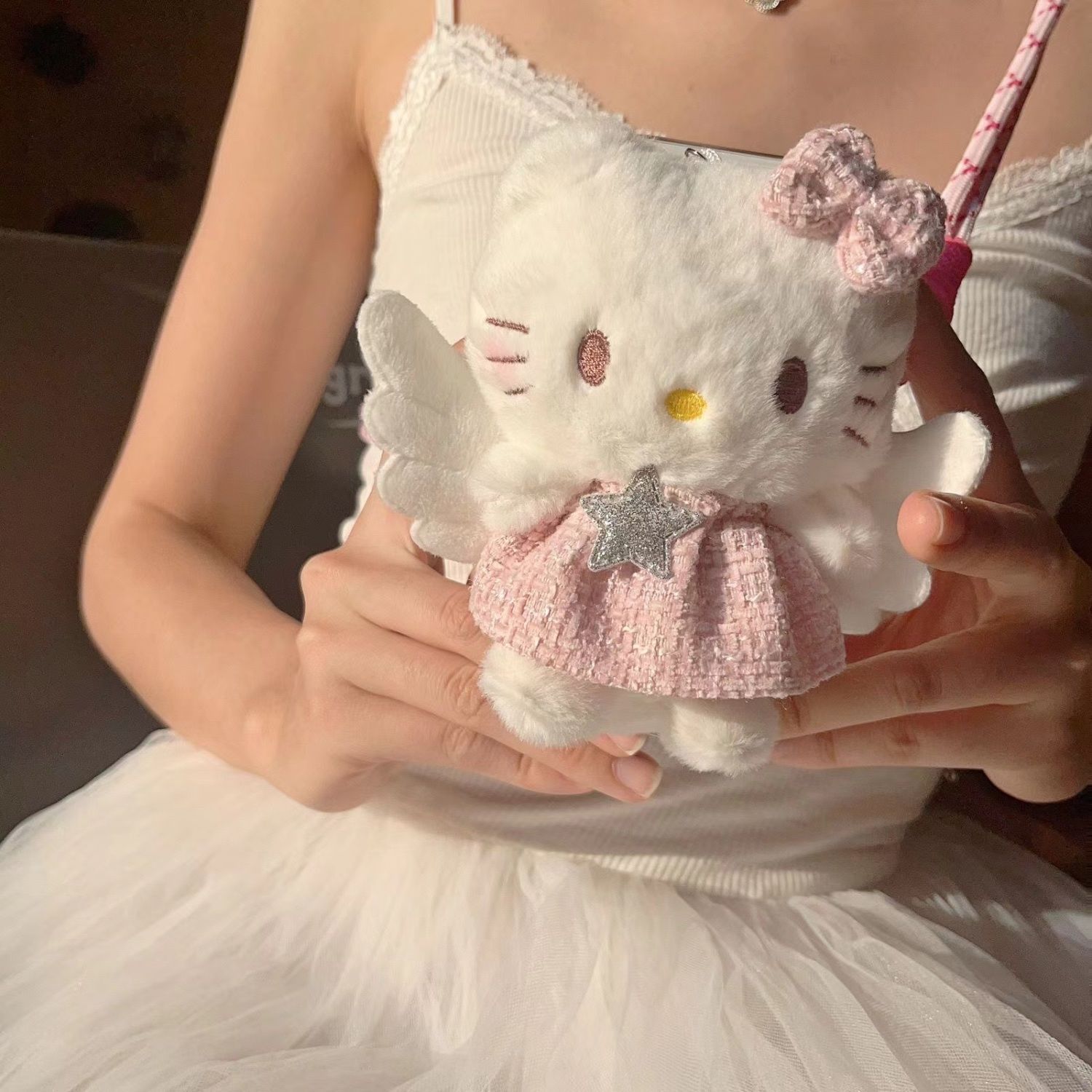 폭발성 엔젤 KT 봉제 장난감 인형 펜던트 귀여운 헬로키티 키 체인 4 인치 인형 선물