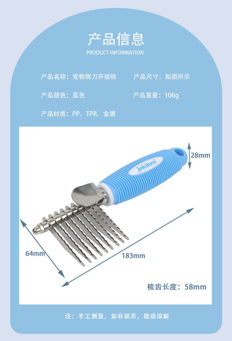 애완동물 사이드 나이프 매듭 빗 개 매듭 제거 헤어 빗 고양이 빗 헤어 청소 애완 동물 용품 공장 도매스토어 가기