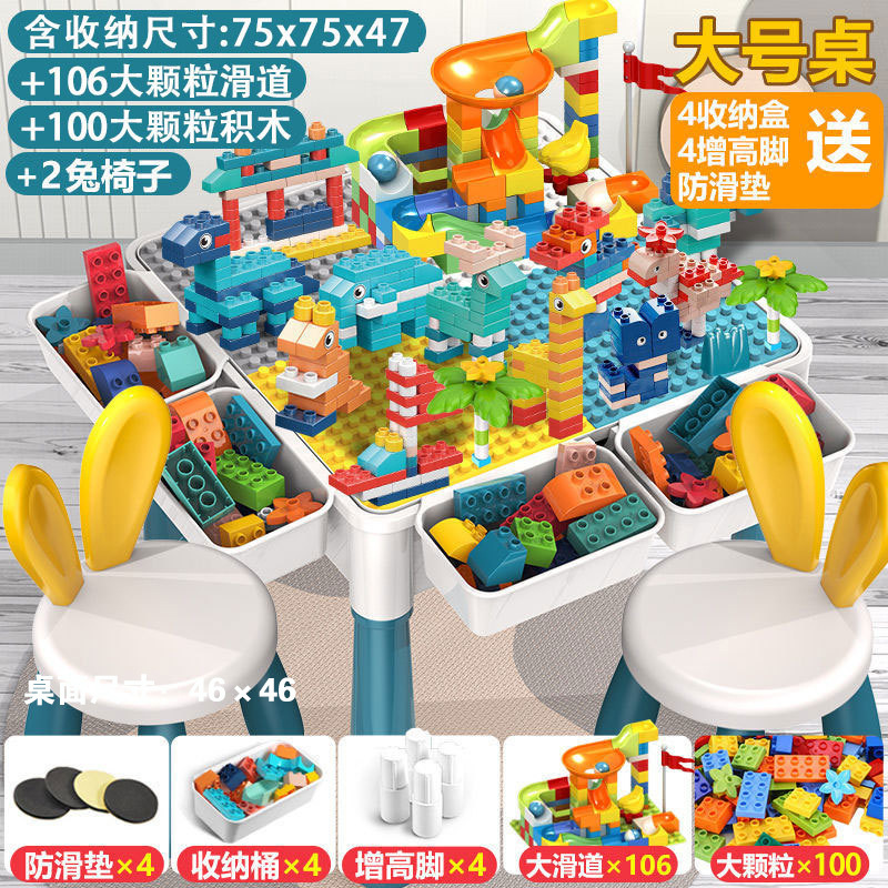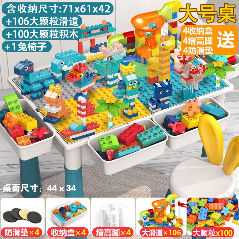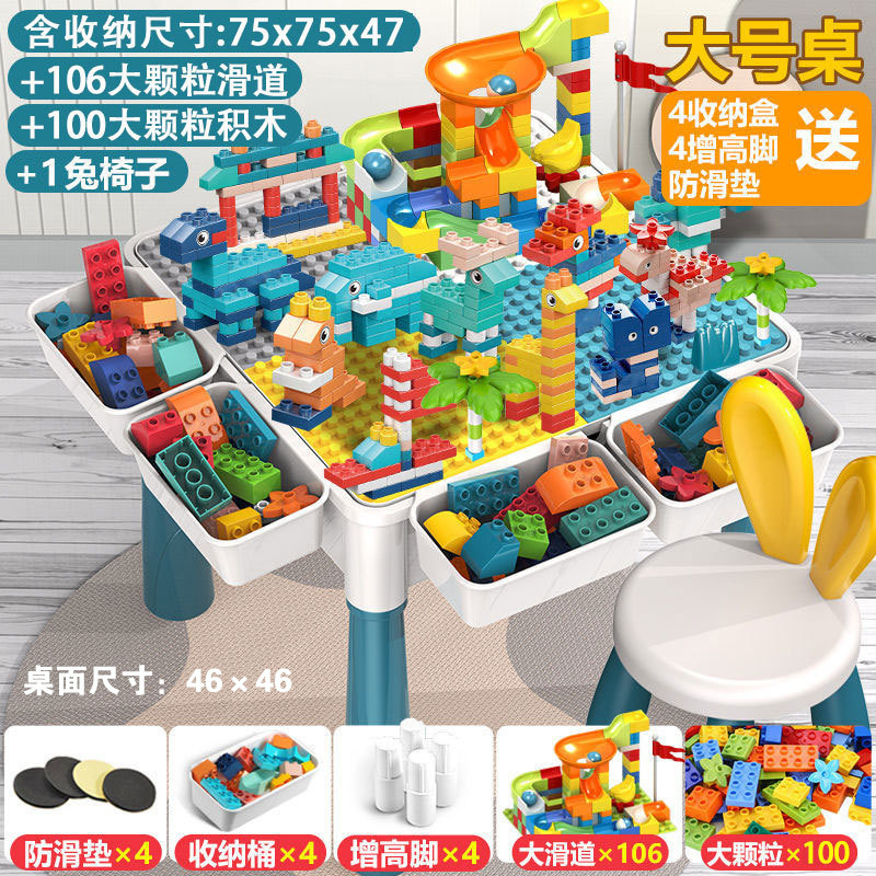 • 확장 테이블 + 수납 높이 4개 + 대형 입자 206개 + 의자