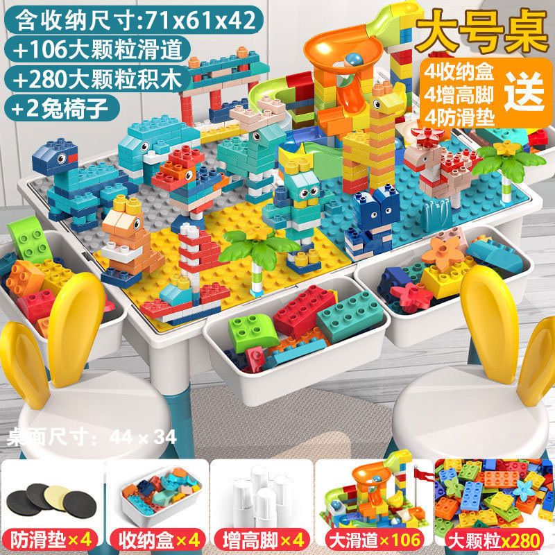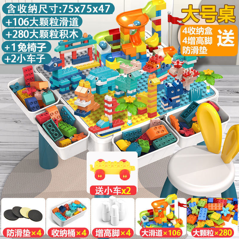 • 확장 테이블 + 수납 높이 4개 + 대형 입자 286개 + 의자