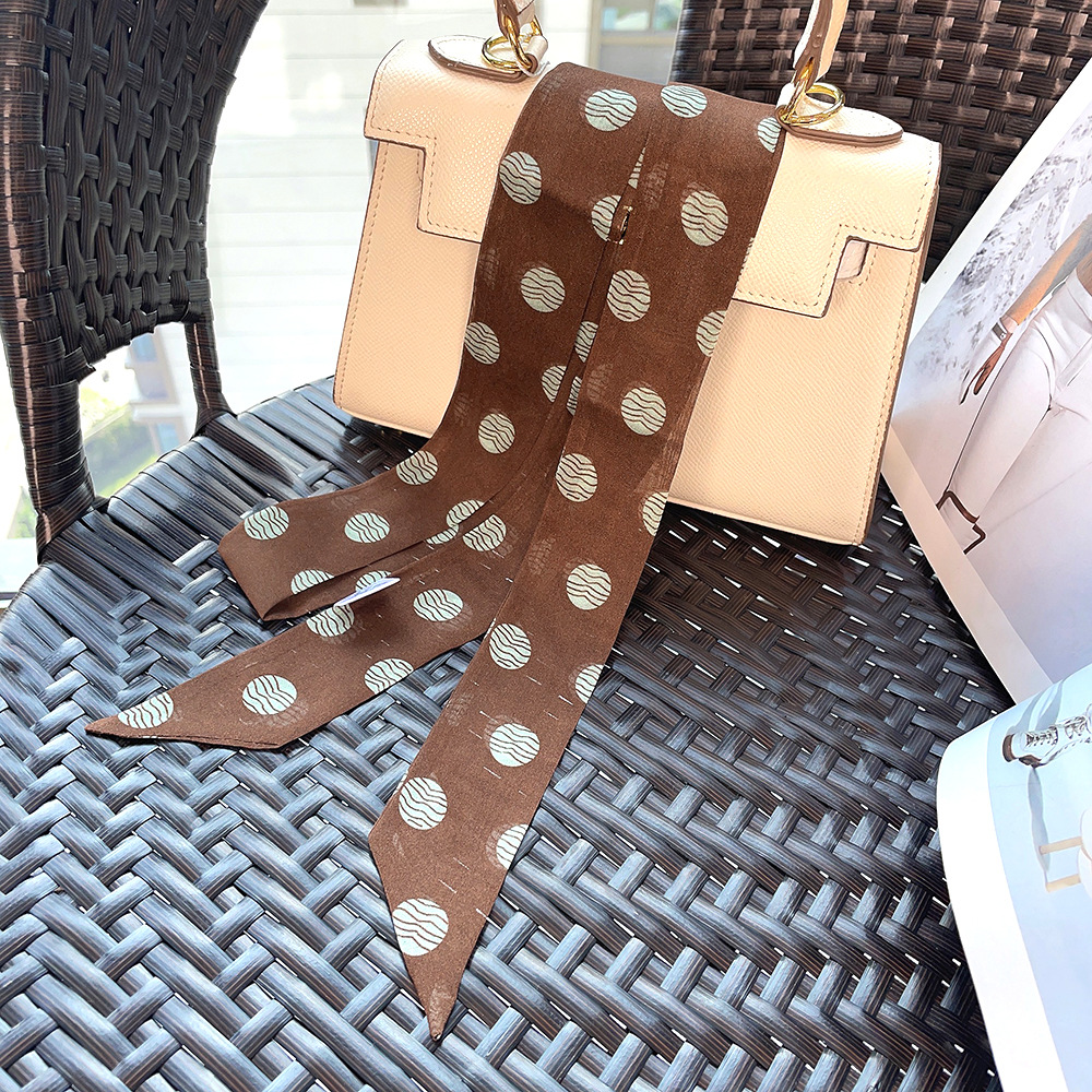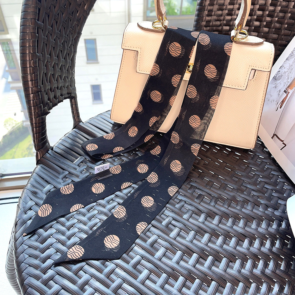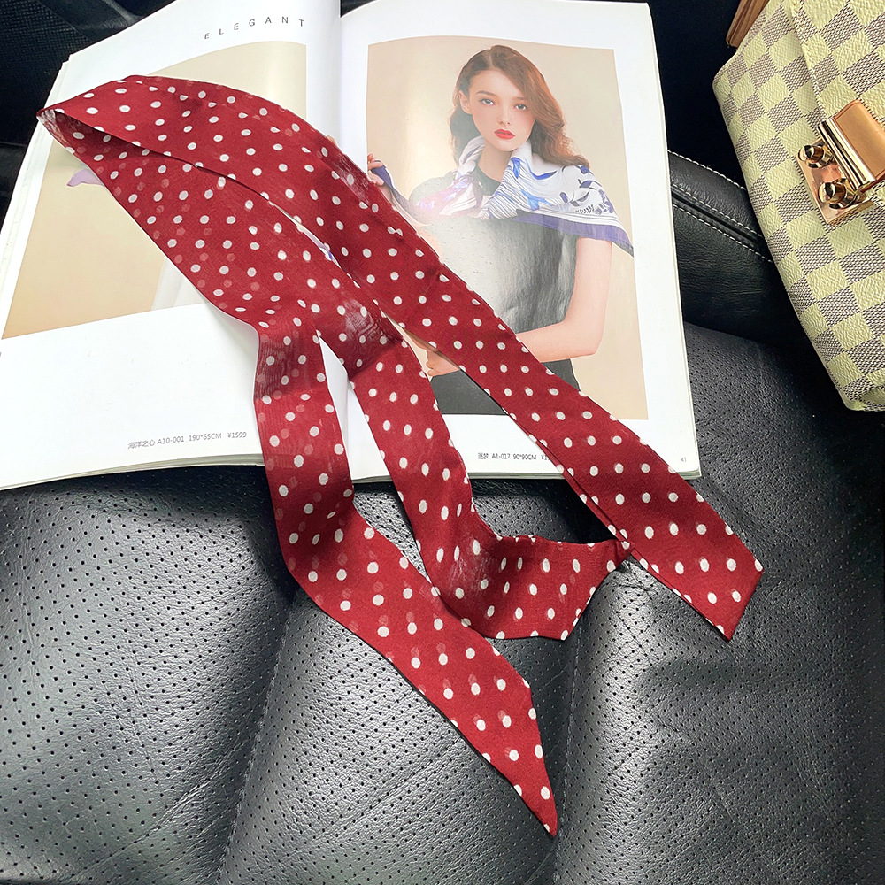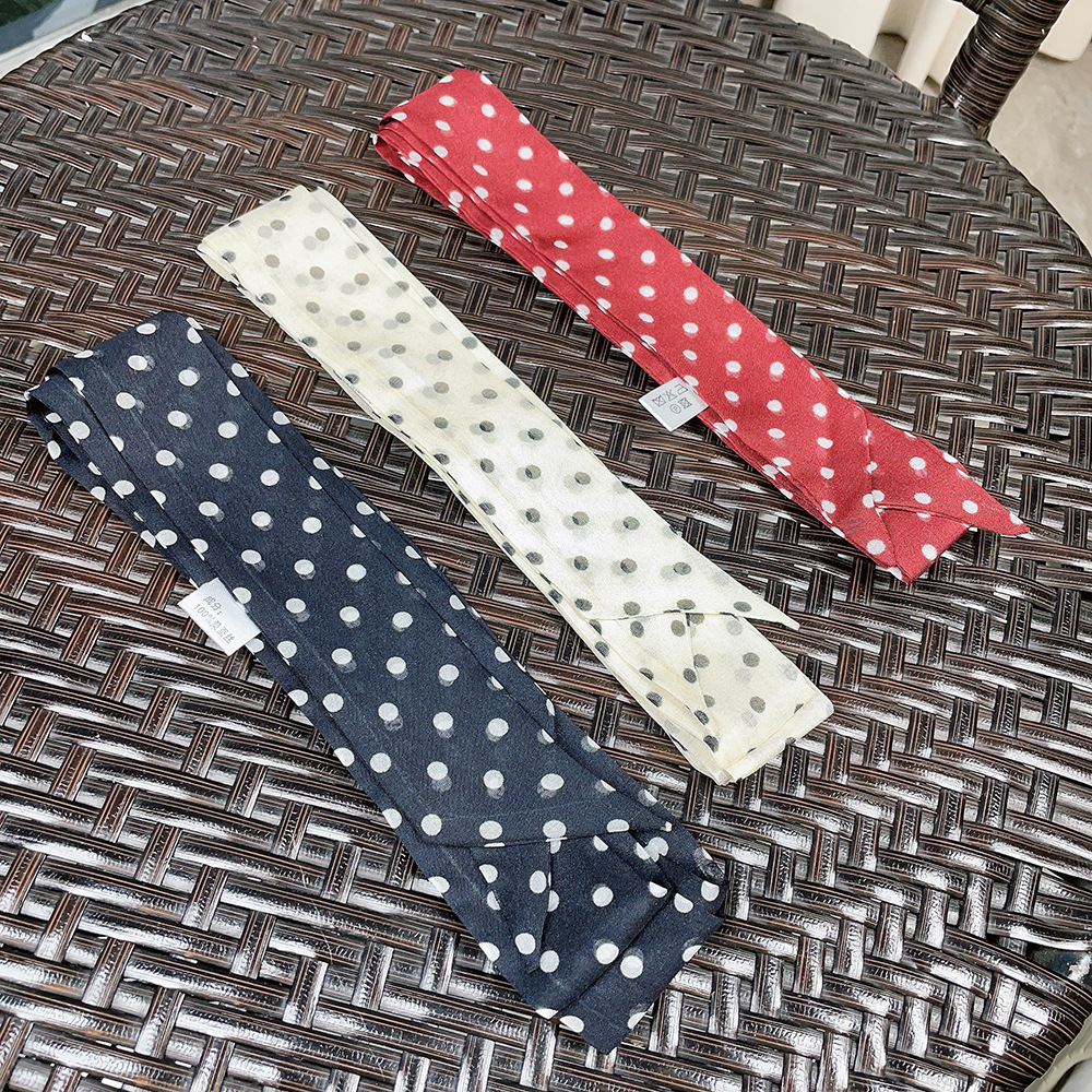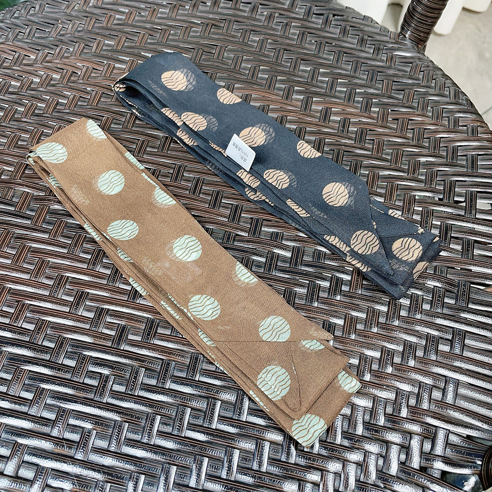 좁은 날씬한 리본 뽕나무 실크 스카프 웨이브 포인트 헵번 스타일 더블 레이어 스카프 벨트 더블 레이어 베벨 리본스토어 가기