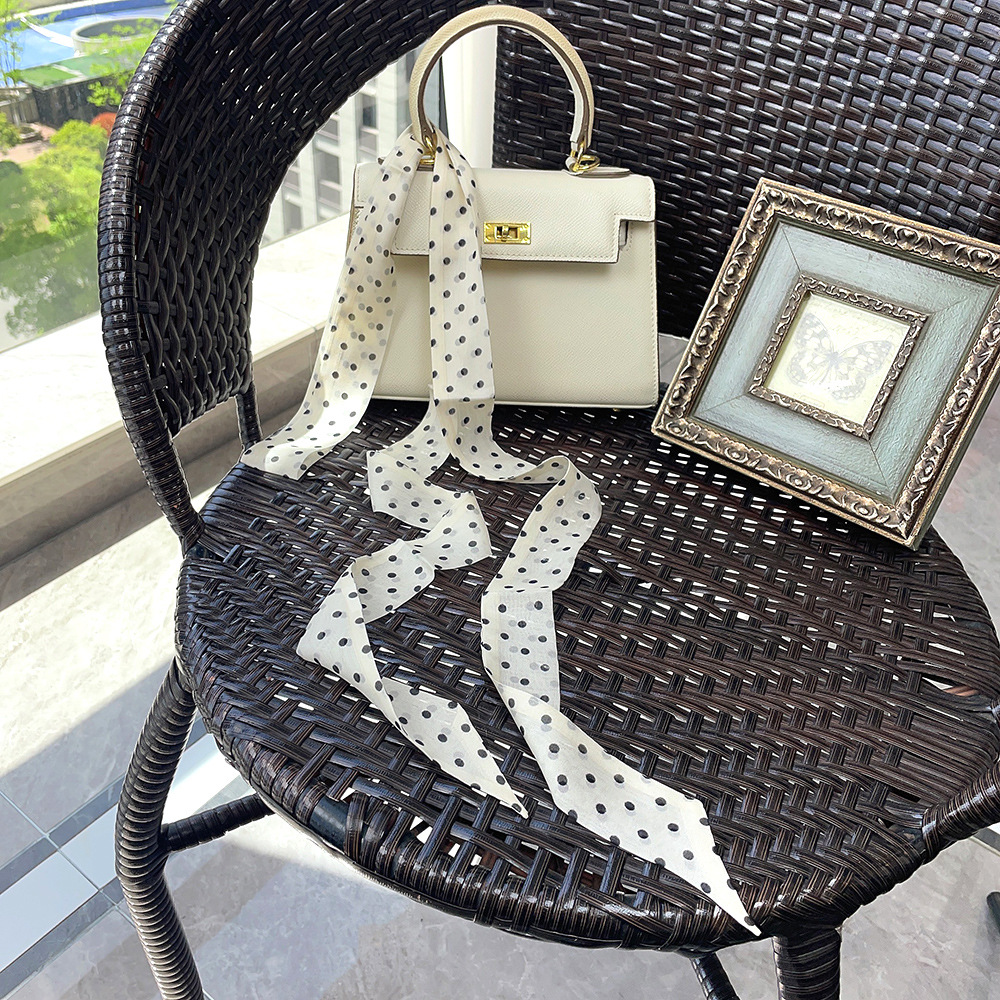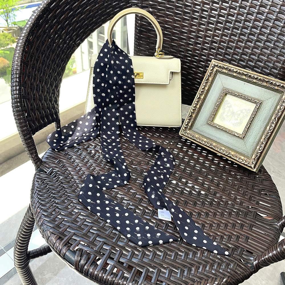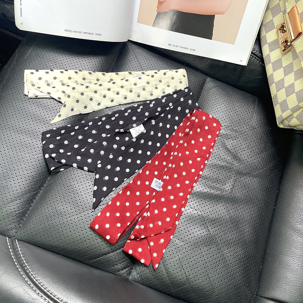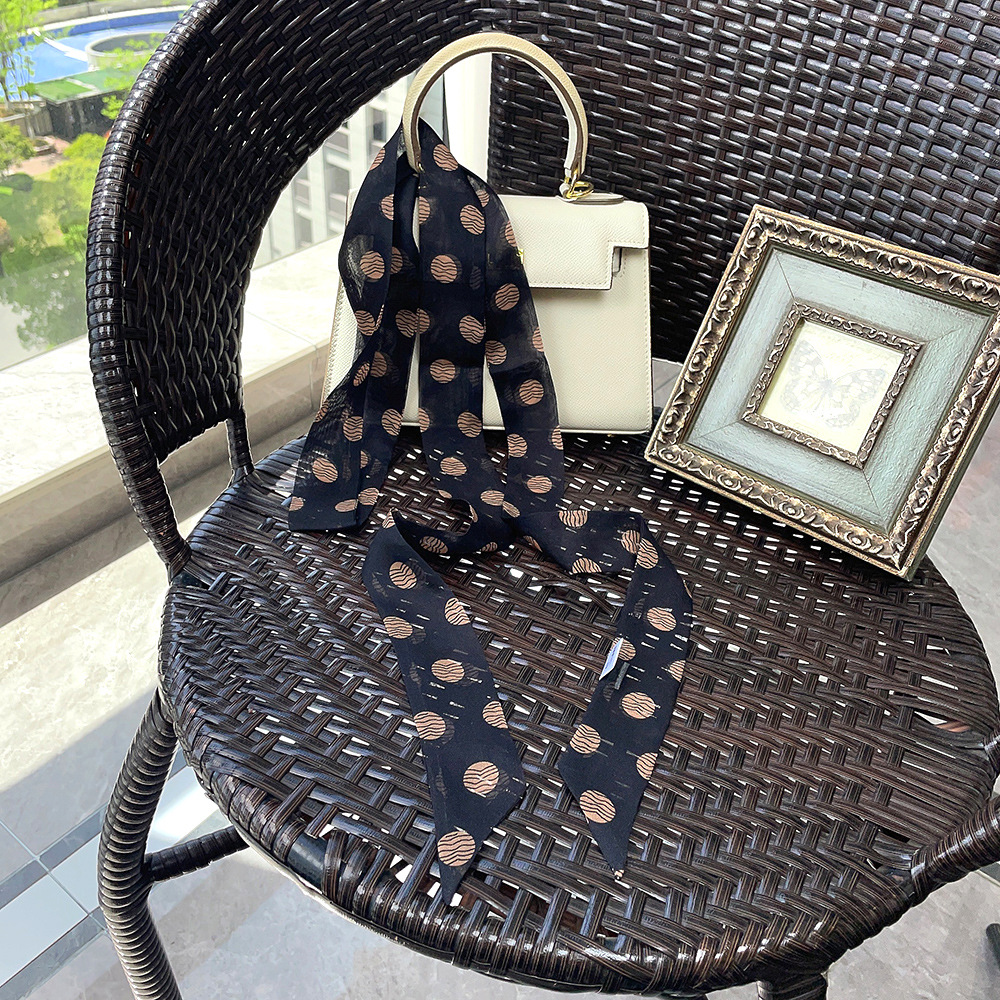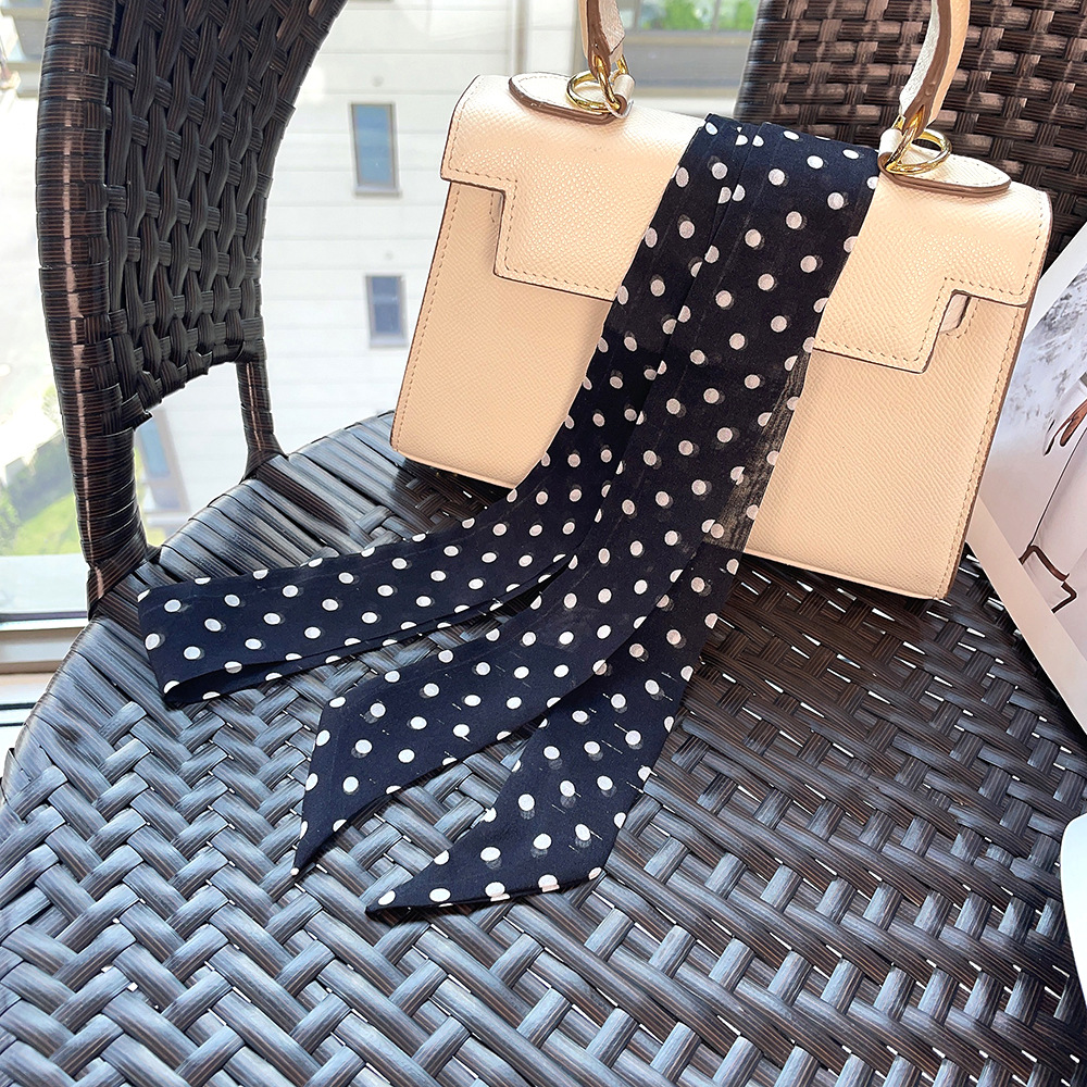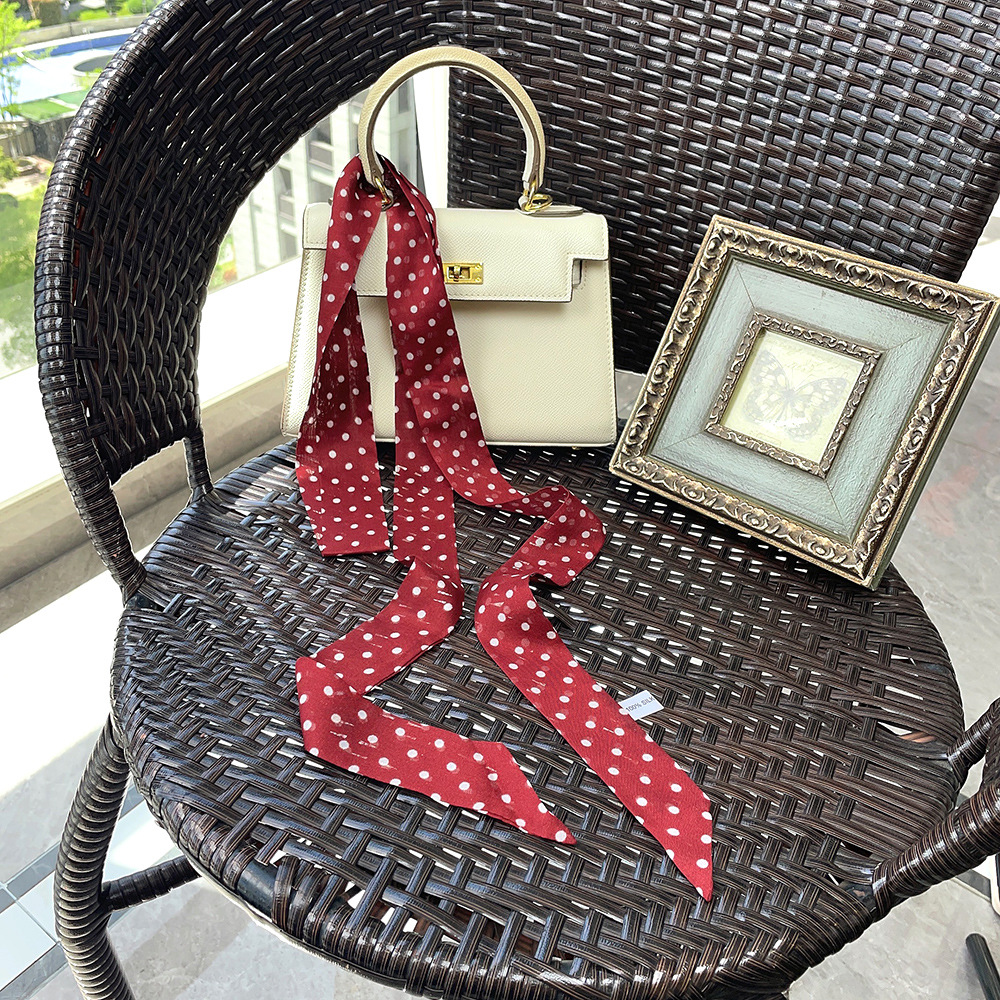 좁은 날씬한 리본 뽕나무 실크 스카프 웨이브 포인트 헵번 스타일 더블 레이어 스카프 벨트 더블 레이어 베벨 리본스토어 가기