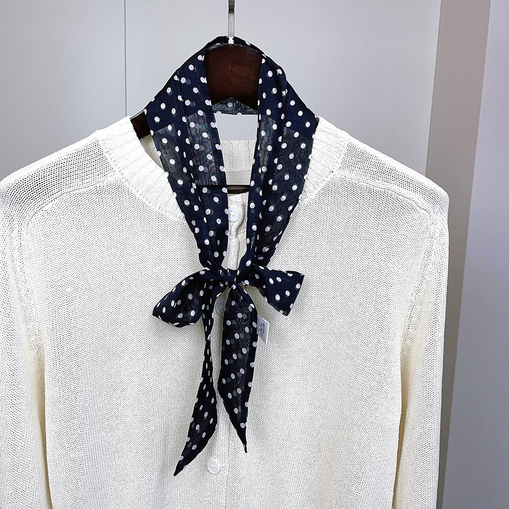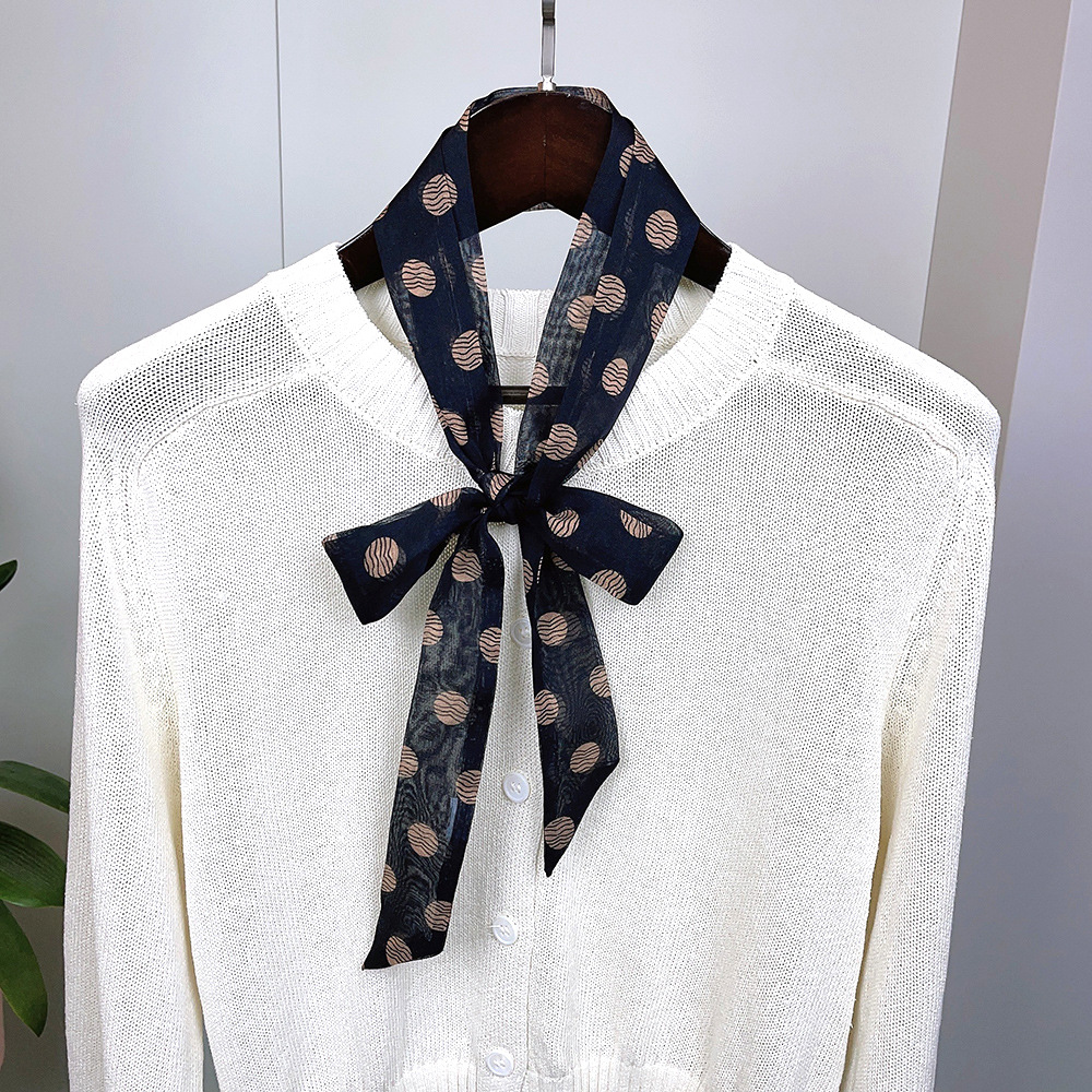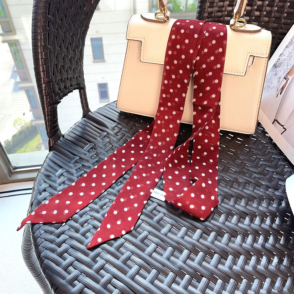 좁은 날씬한 리본 뽕나무 실크 스카프 웨이브 포인트 헵번 스타일 더블 레이어 스카프 벨트 더블 레이어 베벨 리본