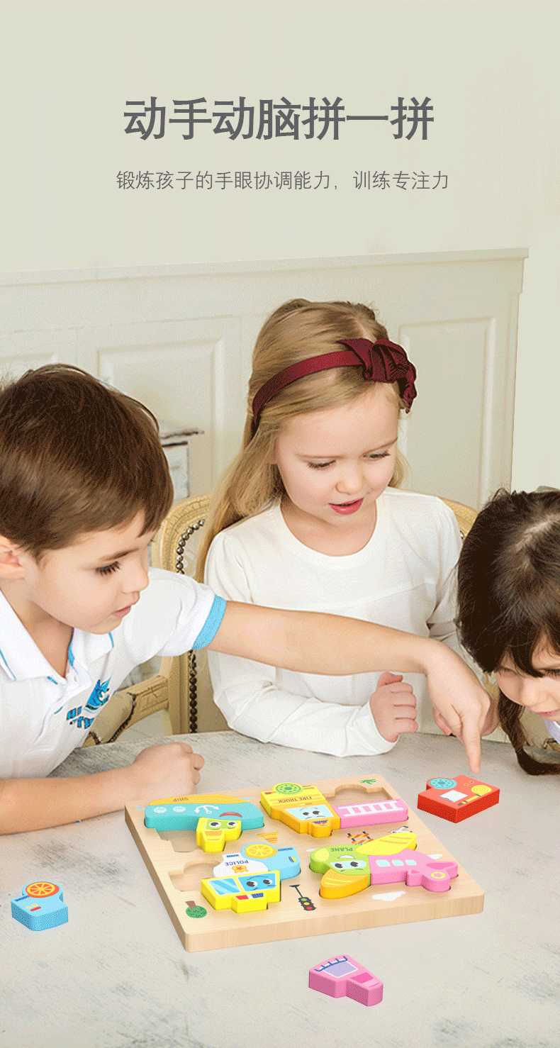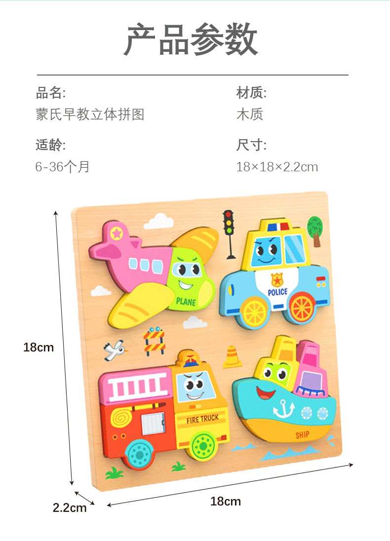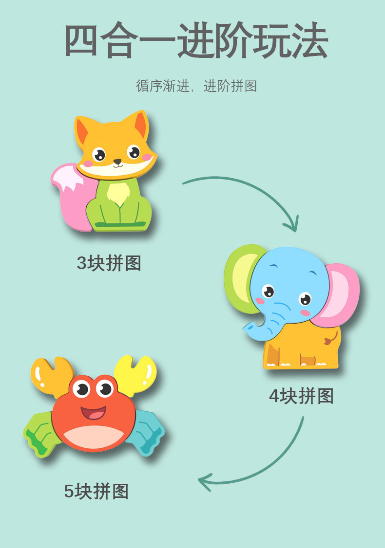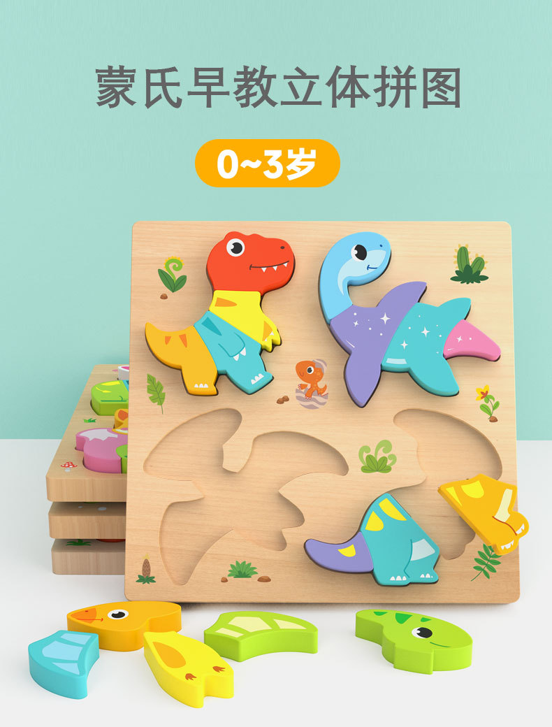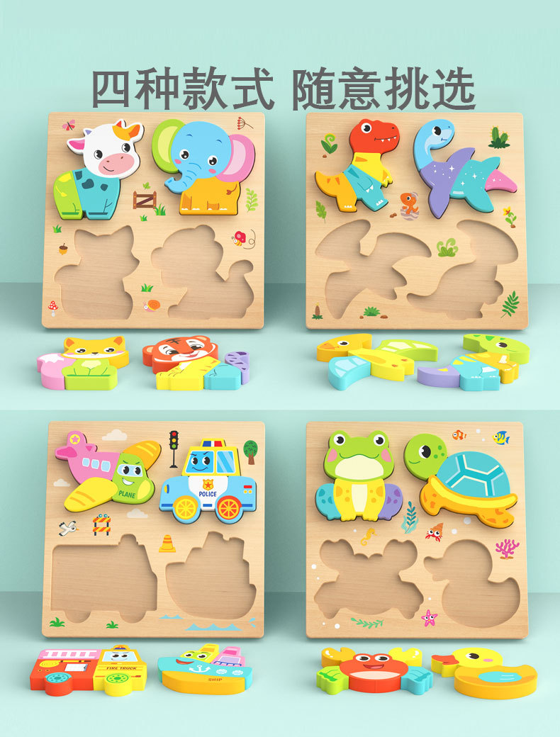 몬테소리 유아 교육 나무 퍼즐 아기 어린이 수제 동물 퍼즐 1-3 세 6 모양 선물 장난감스토어 가기