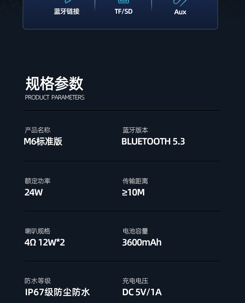 Wanyin Ba M6 표준 에디션 블루투스 스피커 야외 방수 휴대용 자동차 라이딩 과체중 낮은 홈 오디오