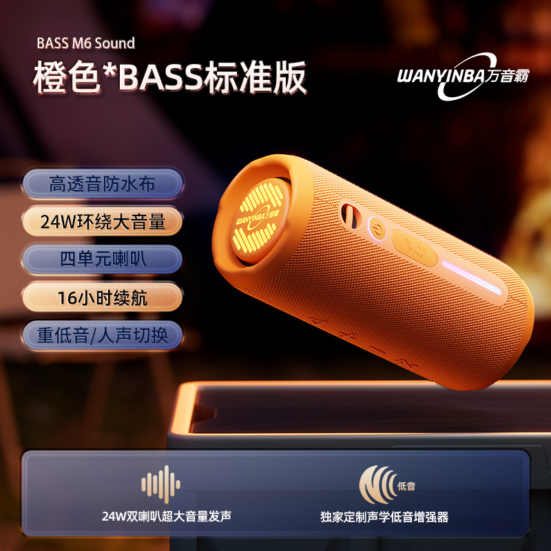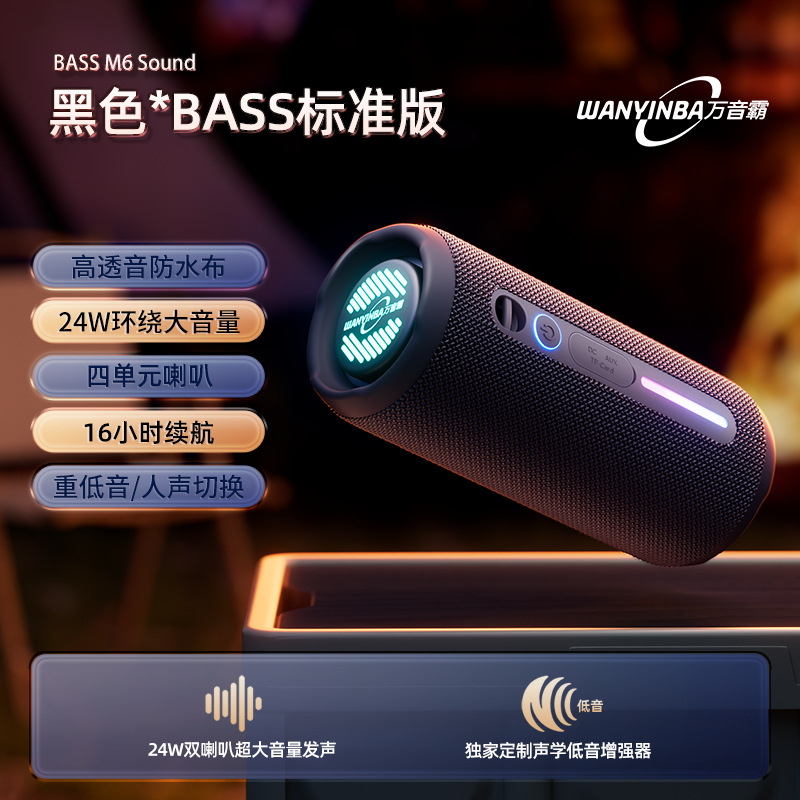 Wanyin Ba M6 표준 에디션 블루투스 스피커 야외 방수 휴대용 자동차 라이딩 과체중 낮은 홈 오디오스토어 가기