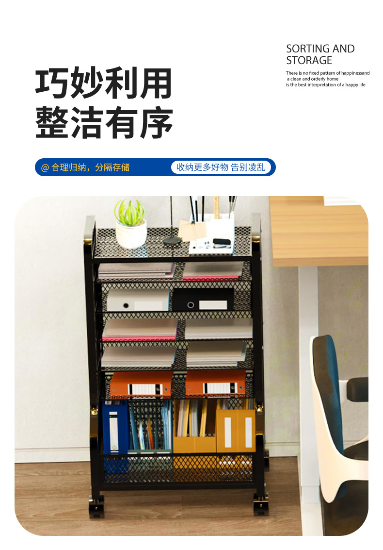 맞춤형 사무실 다층 보관 랙, 롤링 파일 보관 바구니, 펀치 없는 탄소강 다기능 보관 랙스토어 가기