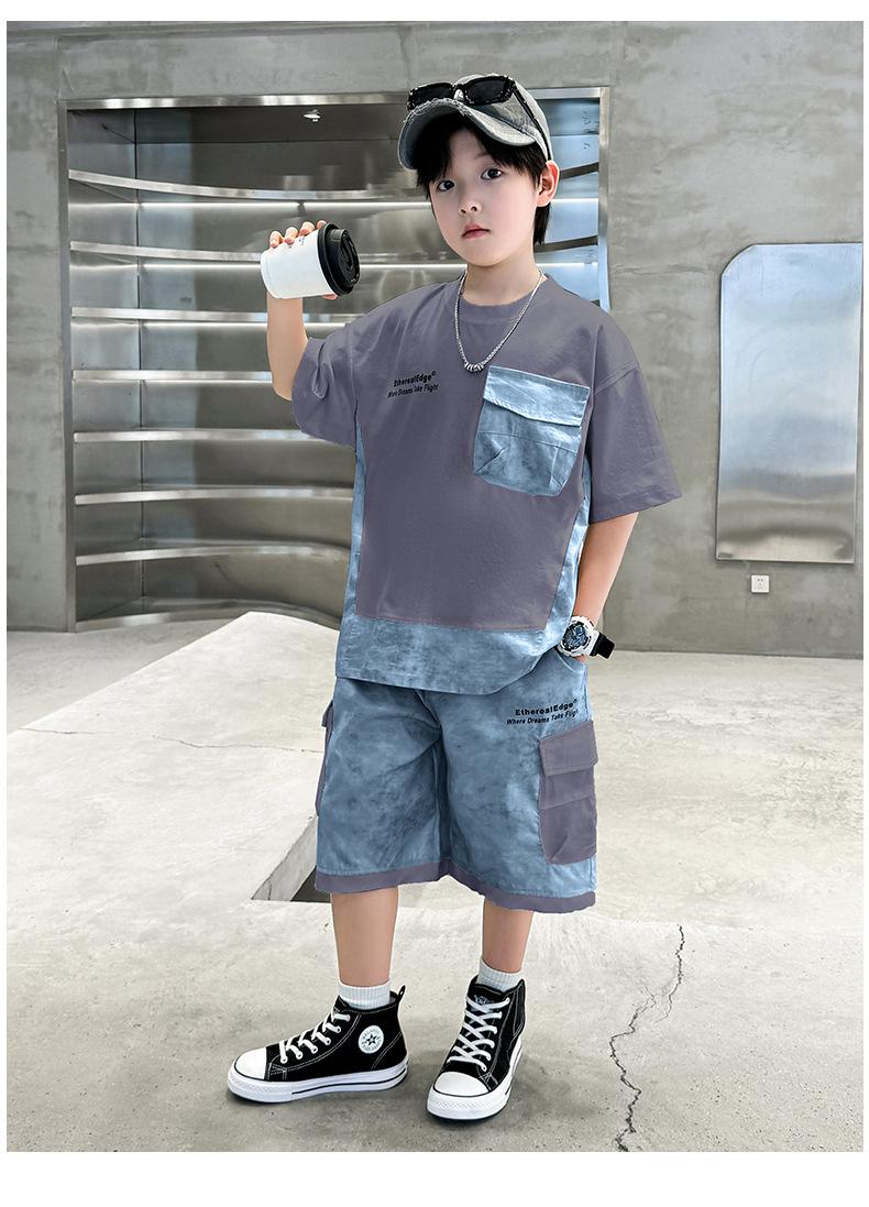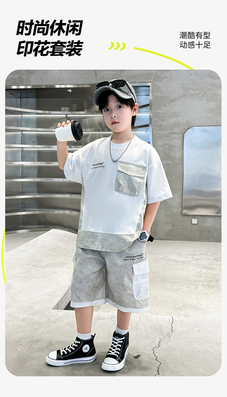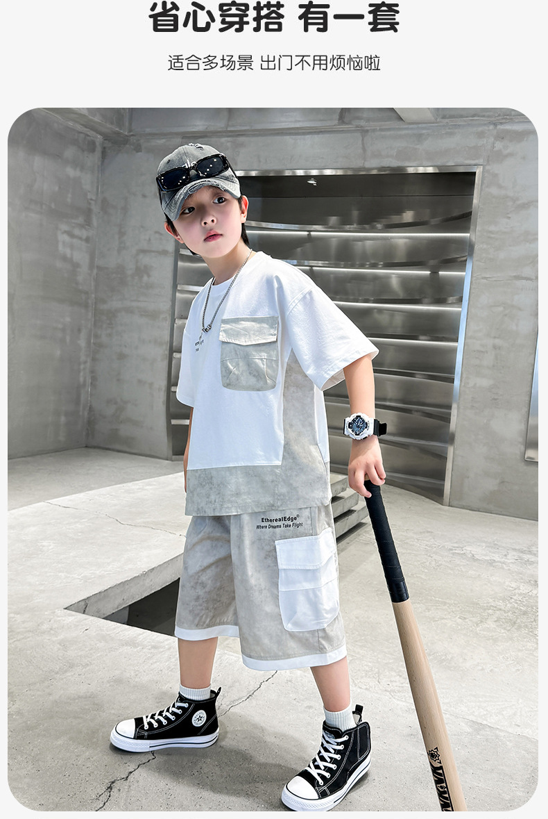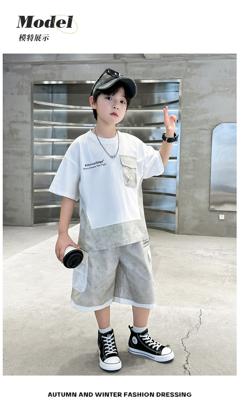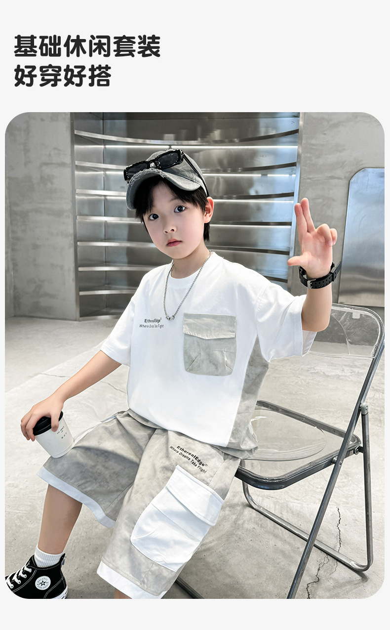 남학생 여름복 세트 2025 신작 여름 반팔 투피스 세트 중대형 어린이 바느질 도구 반바지 시원하고 트렌디스토어 가기