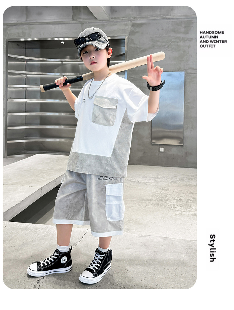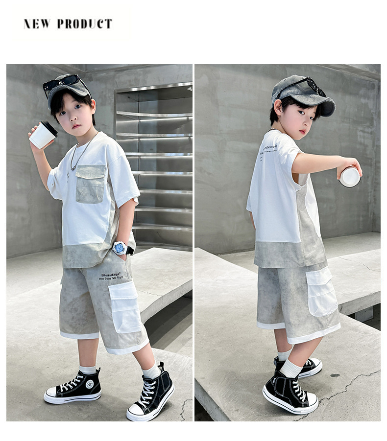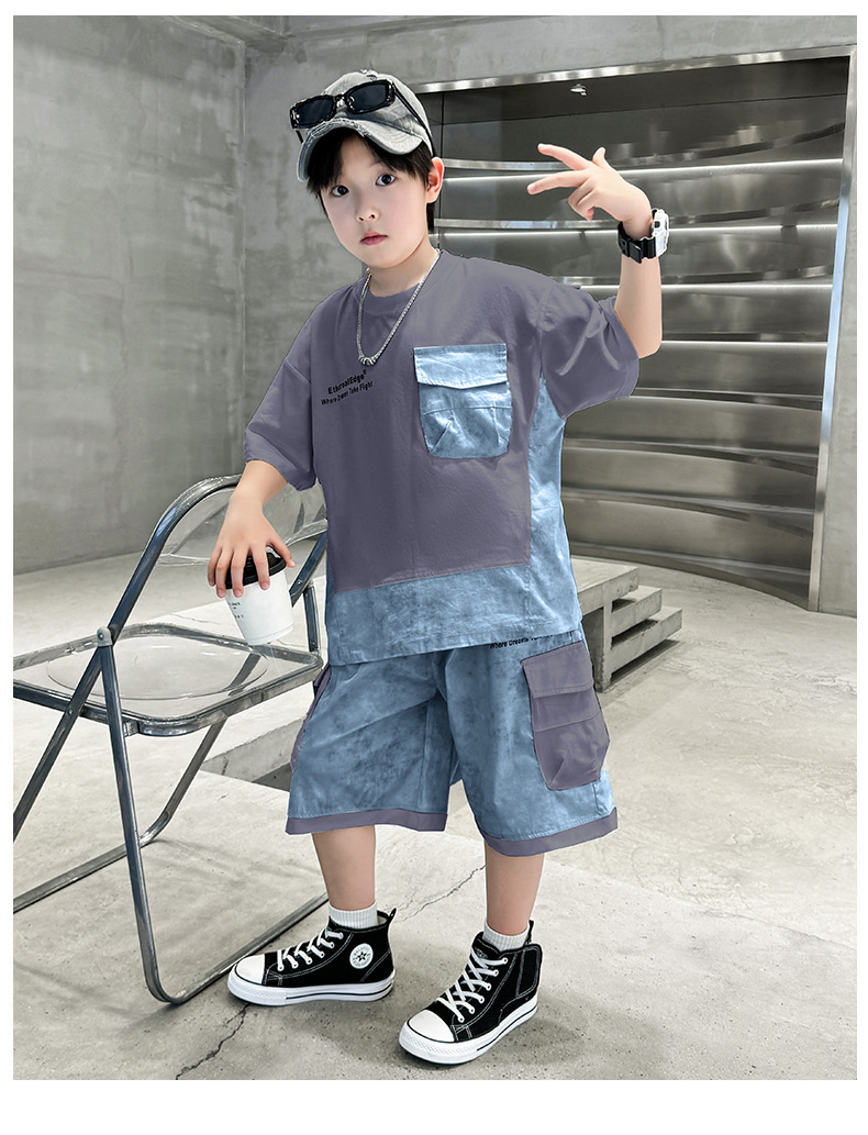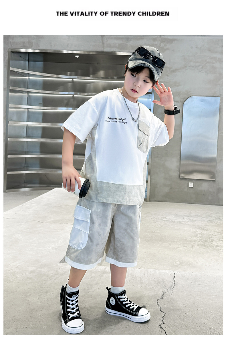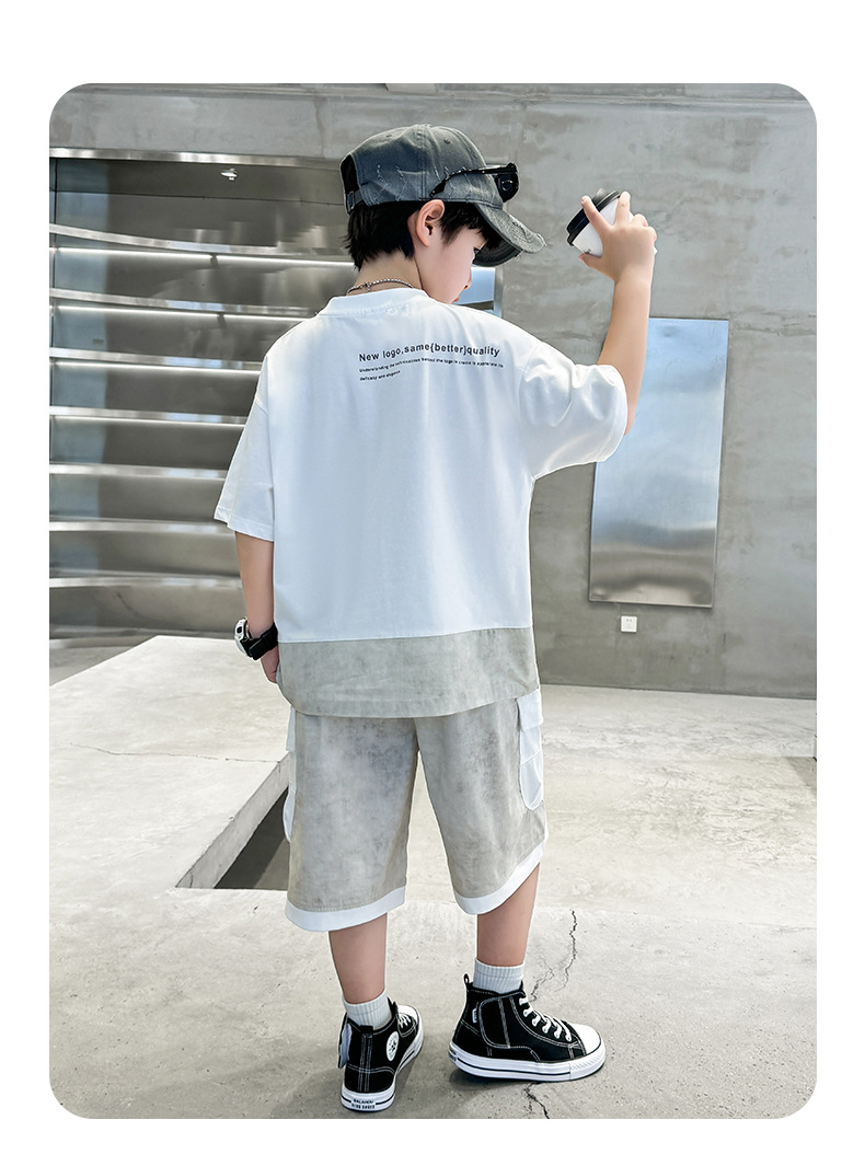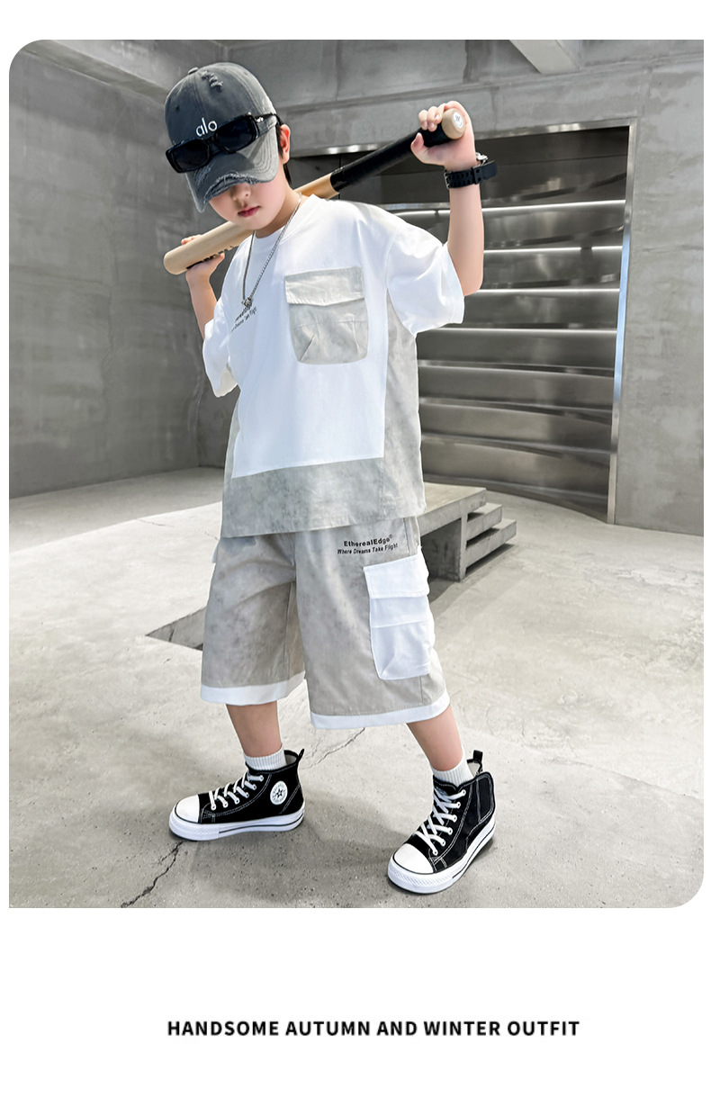 남학생 여름복 세트 2025 신작 여름 반팔 투피스 세트 중대형 어린이 바느질 도구 반바지 시원하고 트렌디스토어 가기