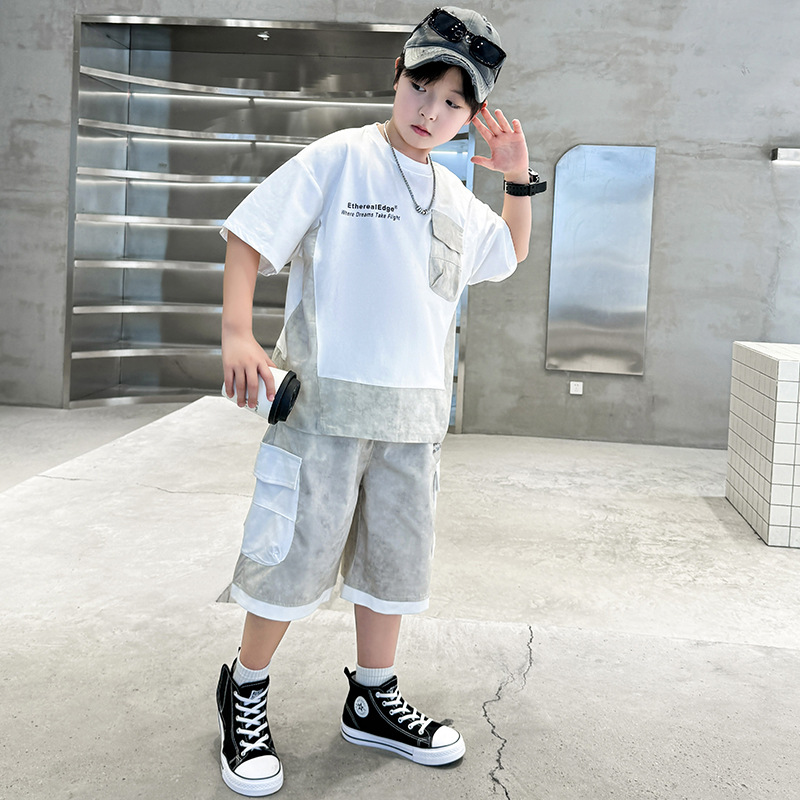 남학생 여름복 세트 2025 신작 여름 반팔 투피스 세트 중대형 어린이 바느질 도구 반바지 시원하고 트렌디
