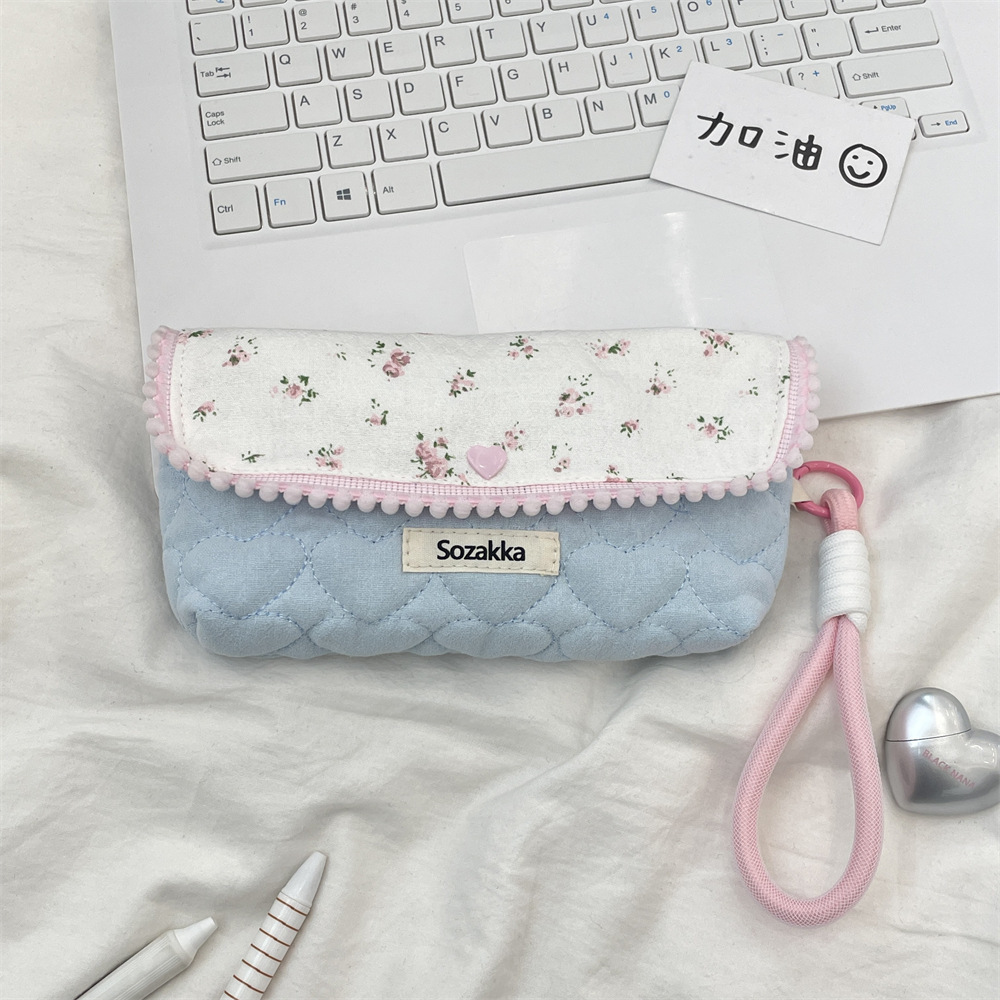 5412 한국 꽃무늬 연필 가방 보관 가방 멋진 기능 대용량 학생 문구 상자 다기능