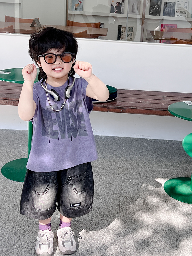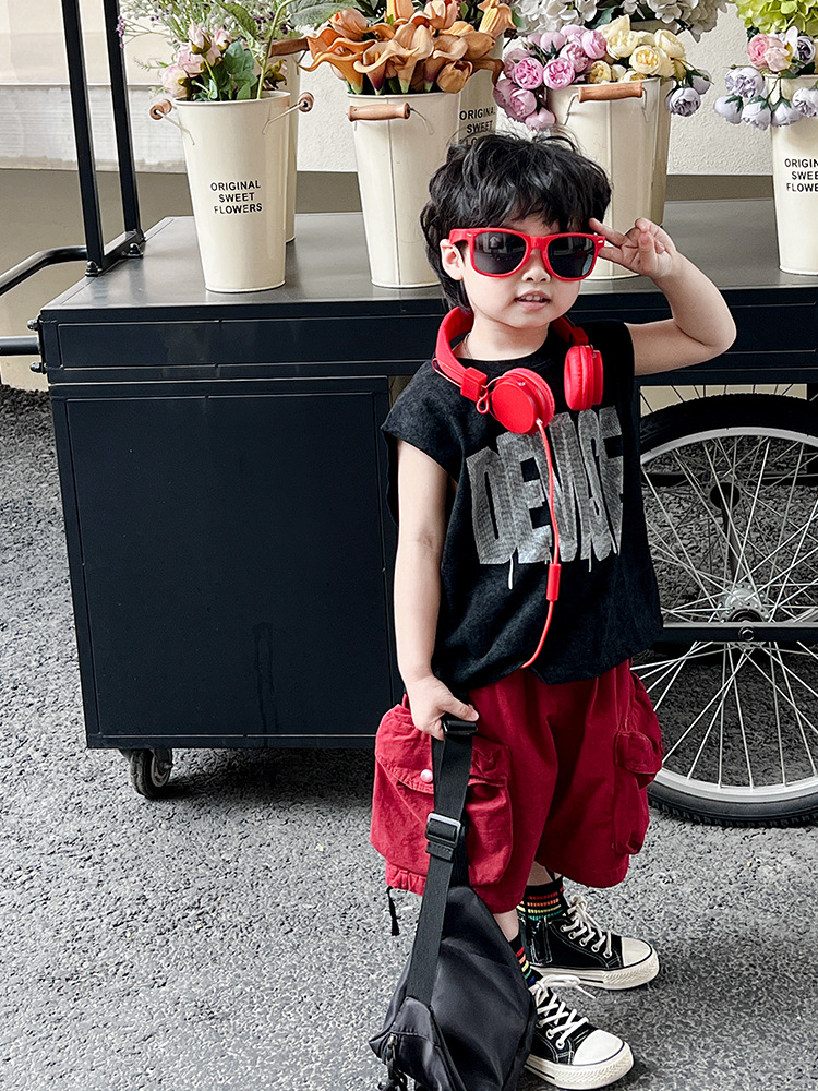 두꺼운 소년 여름 조끼 2025 새로운 어린이 최고 중형 어린이 여름 어린이 소년 트렌디 한 멋진 민소매 티셔츠스토어 가기