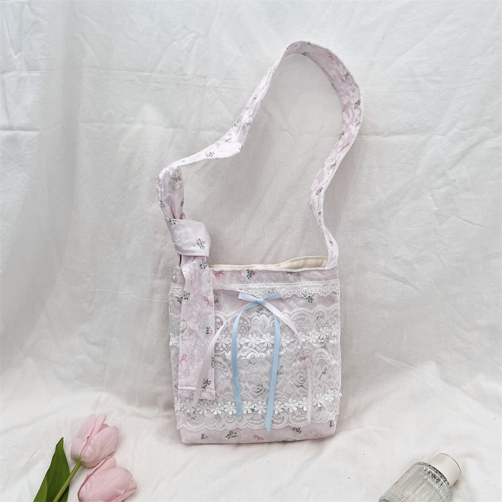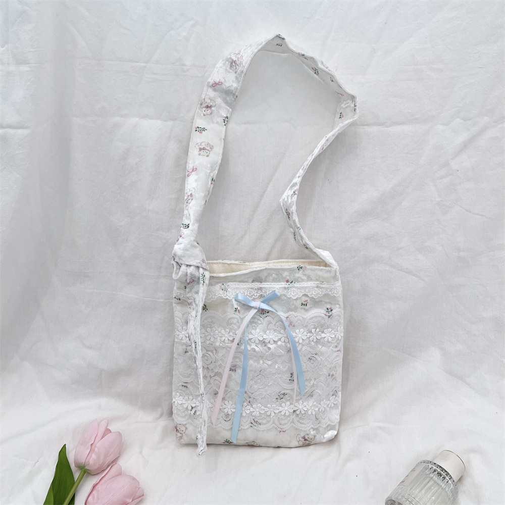 5441 실크 텍스처 툴레 숄더 언더암 가방 여성의 귀여운 곰 크로스 바디 가방 쇼핑 휴대용 캔버스 가방스토어 가기
