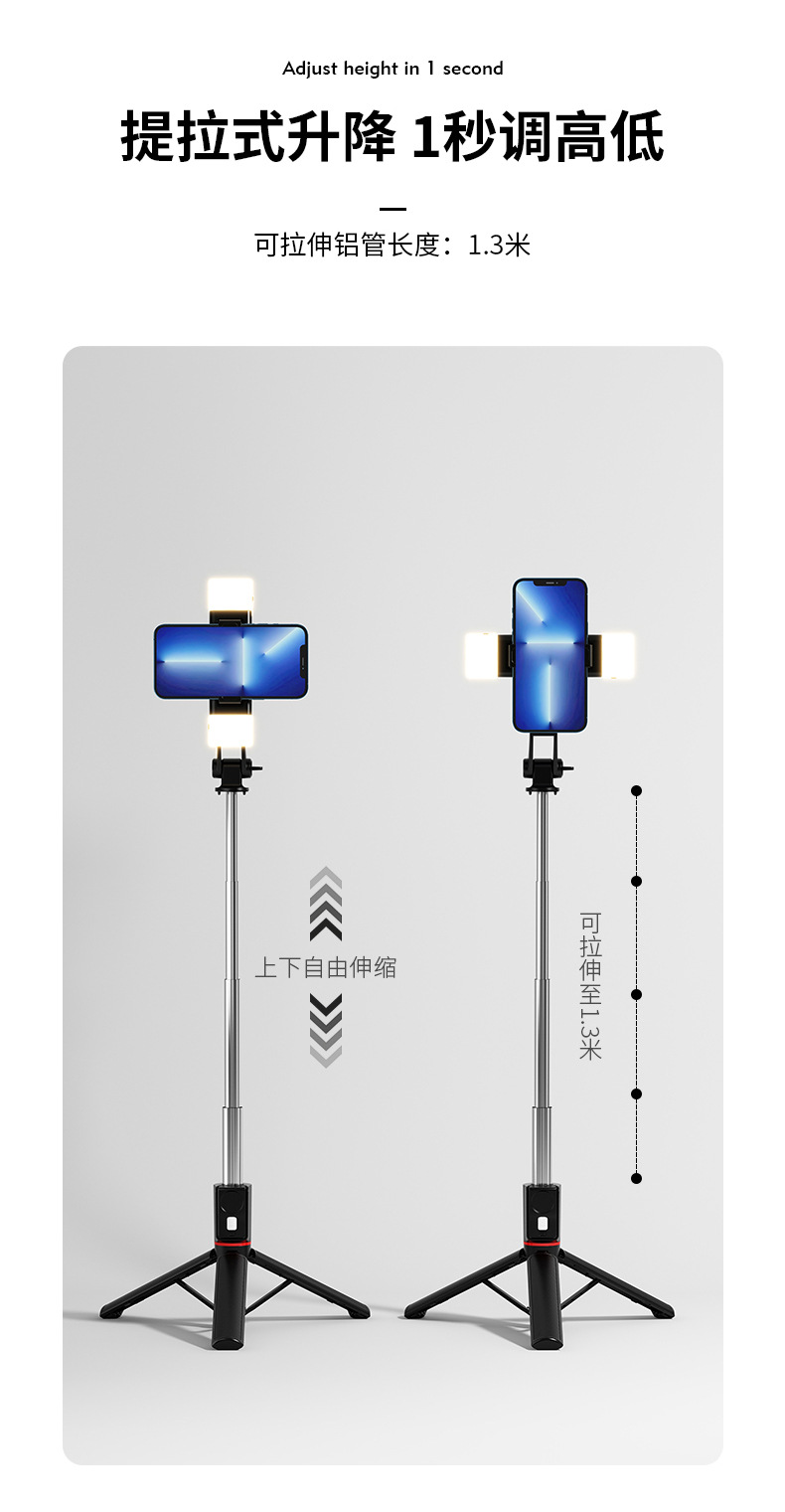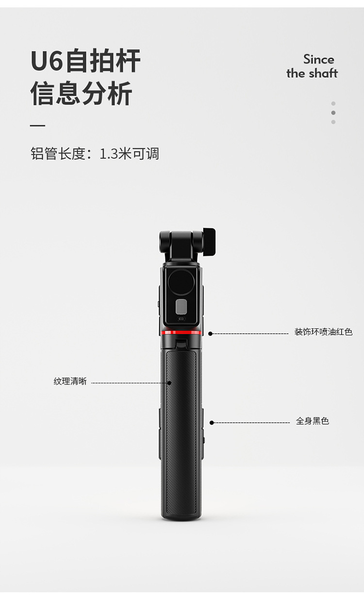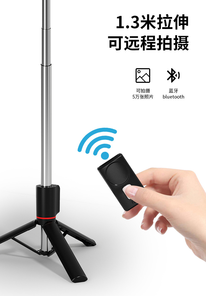 1.3 m 휴대 전화 블루투스 셀카 스틱 U6 스테인레스 스틸 트레몰로 라이브 방송 스탠드 1 블루투스 원격 제어 텔레스코픽 삼각대