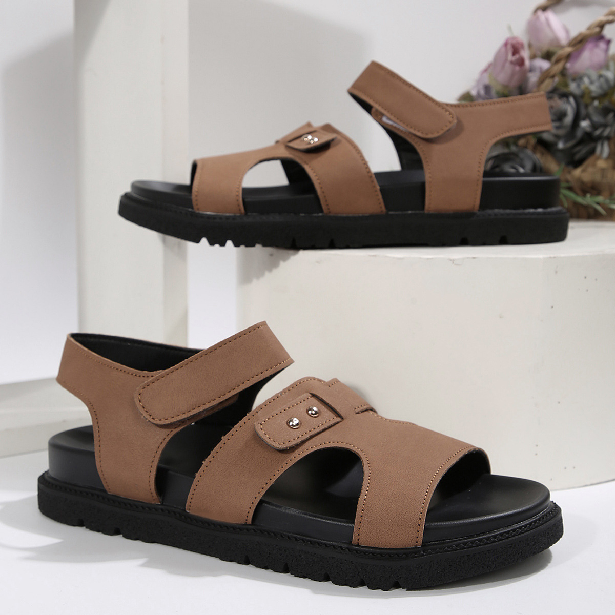 유럽과 미국의 플러스 사이즈 슬리퍼 여성 여름 새 단어 단색 캐주얼 조커 두꺼운 바닥 벨크로 비치 슬리퍼 도매스토어 가기