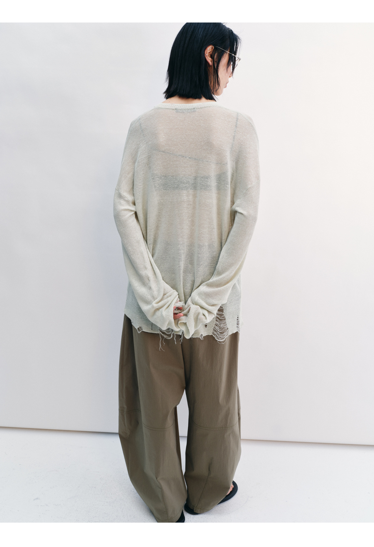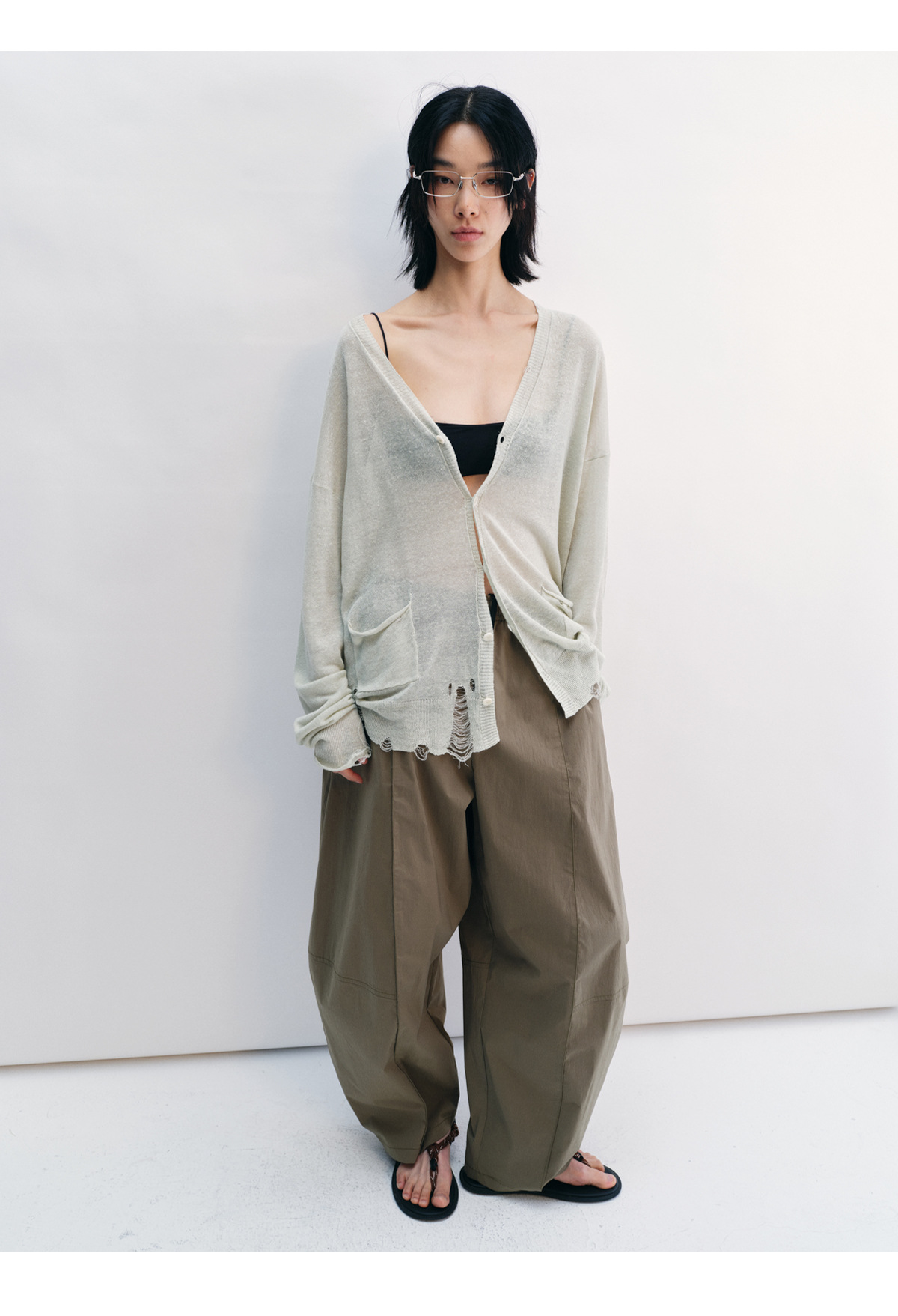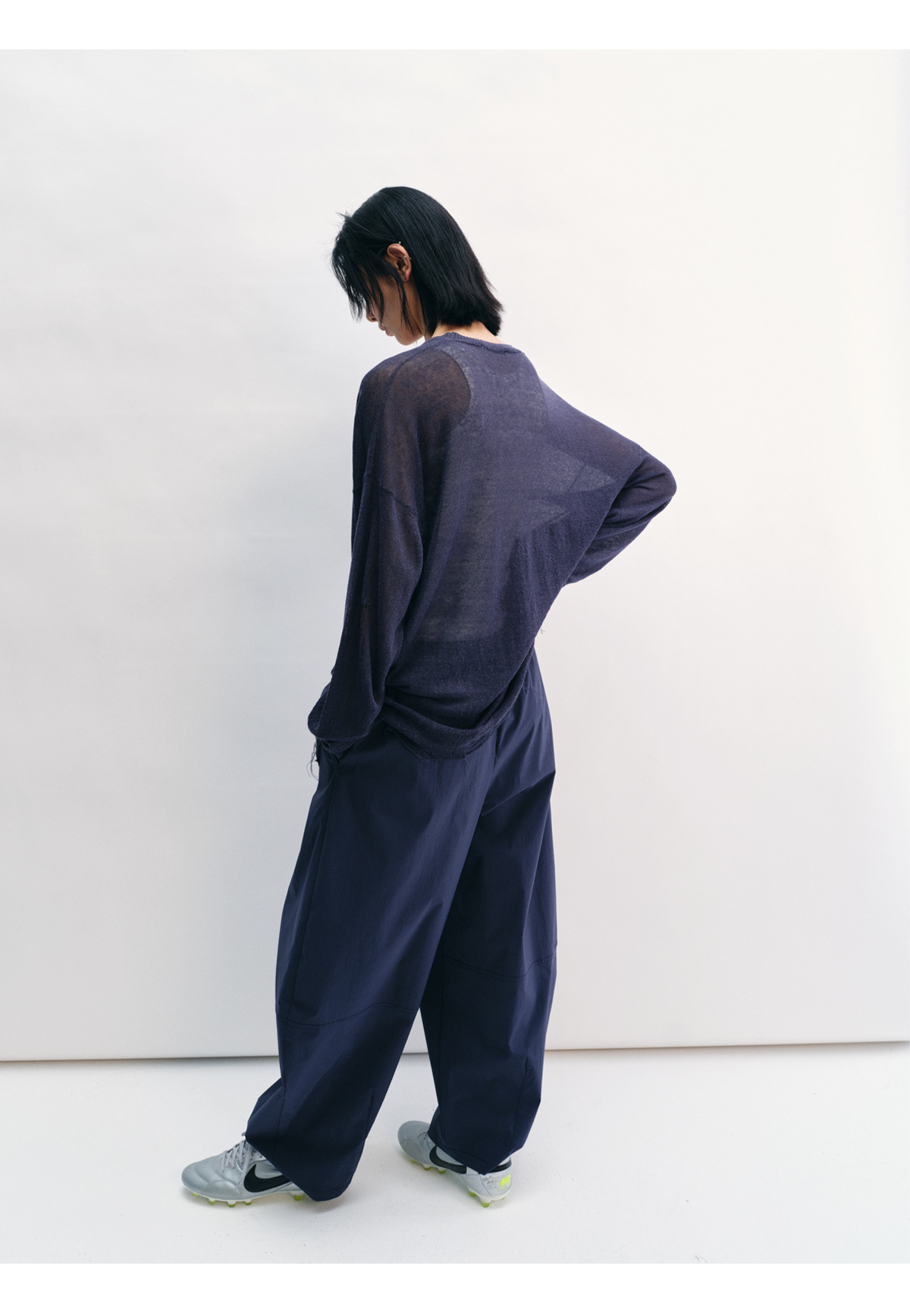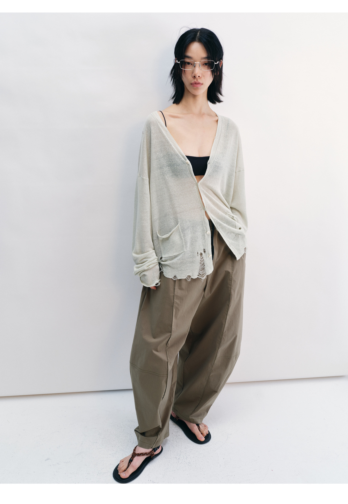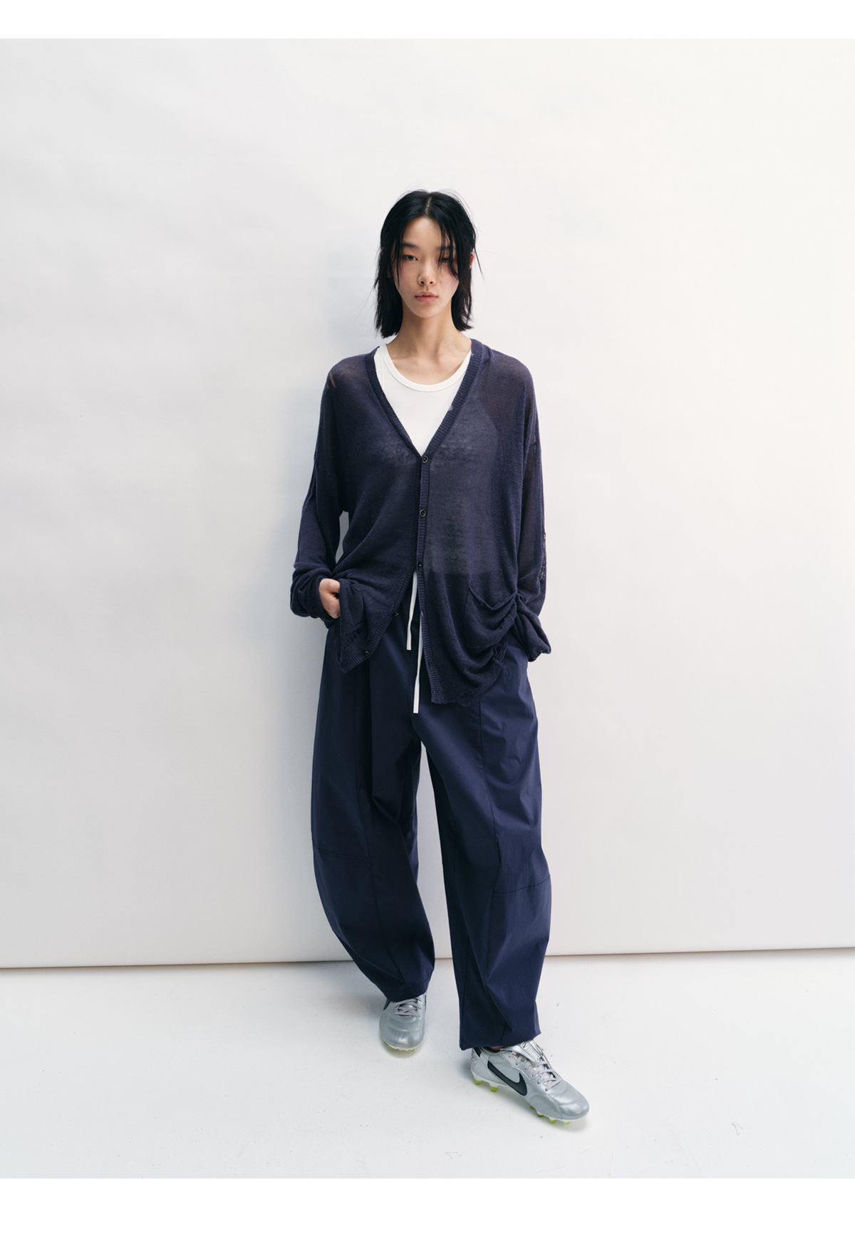 [시간] 새 코튼 블렌드 라이트 스포츠 바지 느슨한 엘라스틱 무승부 허리 캐주얼 바지 여성 V8752