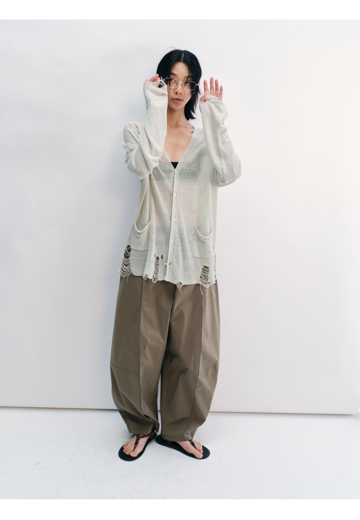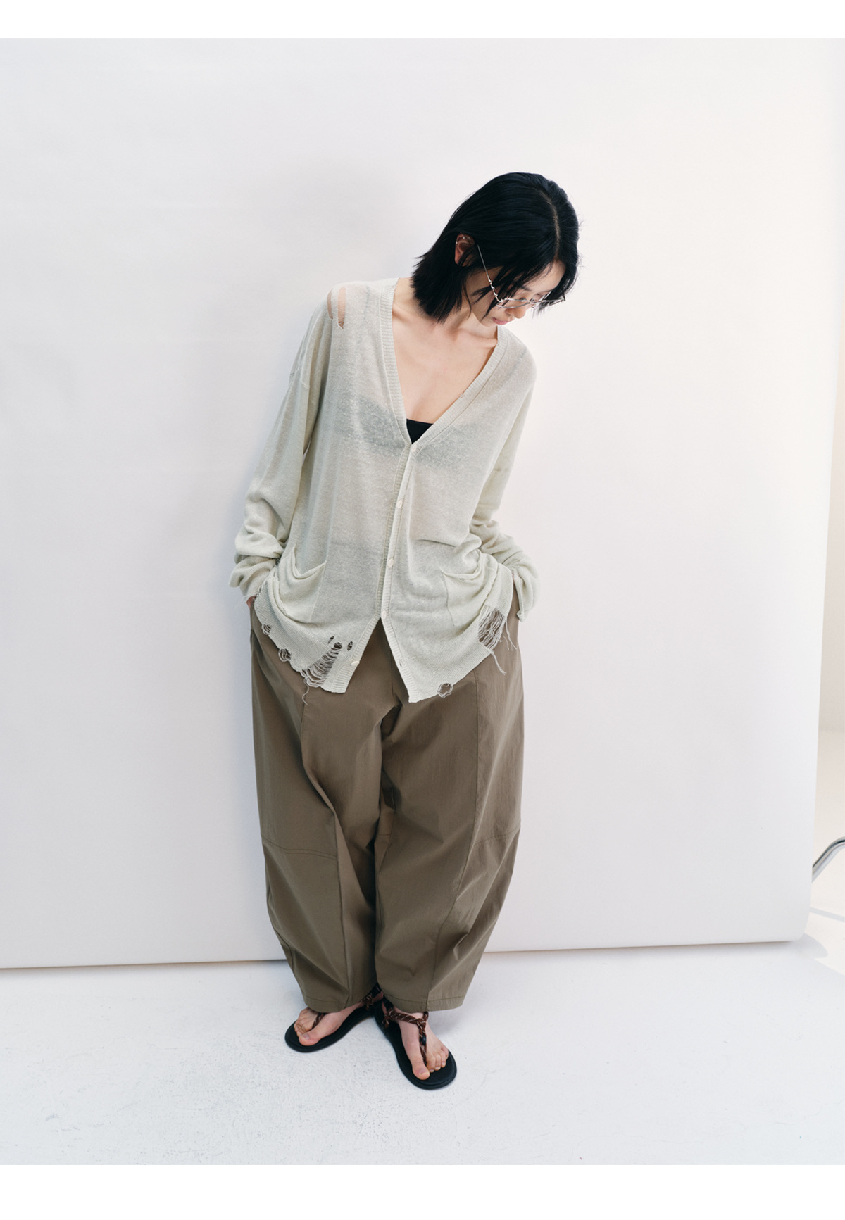 [시간] 새 코튼 블렌드 라이트 스포츠 바지 느슨한 엘라스틱 무승부 허리 캐주얼 바지 여성 V8752스토어 가기
