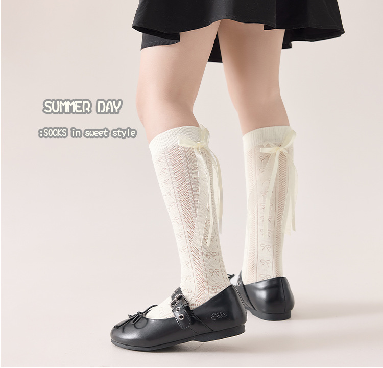 소녀 양말 여름 얇은 메쉬 스타킹 어린이 흰 활 종아리 양말 아기 레이스 공주 양말스토어 가기
