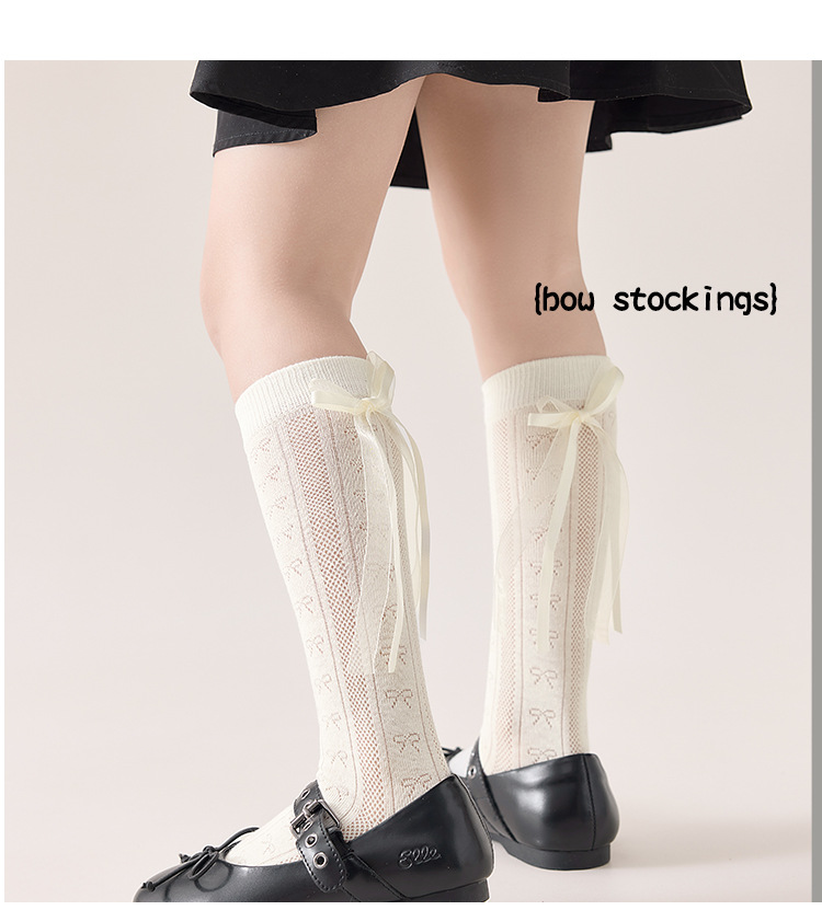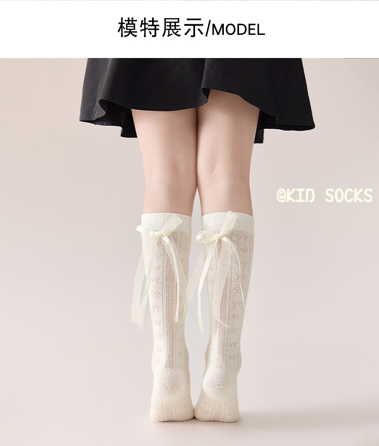 소녀 양말 여름 얇은 메쉬 스타킹 어린이 흰 활 종아리 양말 아기 레이스 공주 양말