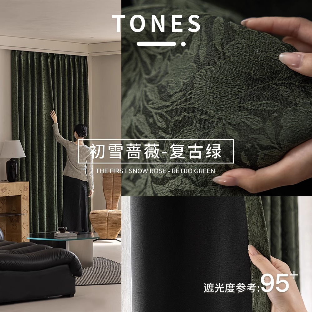 새로운 프랑스 복고풍 로즈 셔닐 암막 커튼, 엠보싱 중세 자카드 거실 커튼, 소양 커튼 원단스토어 가기