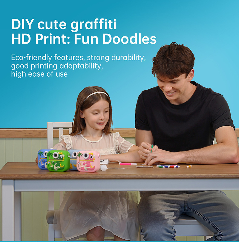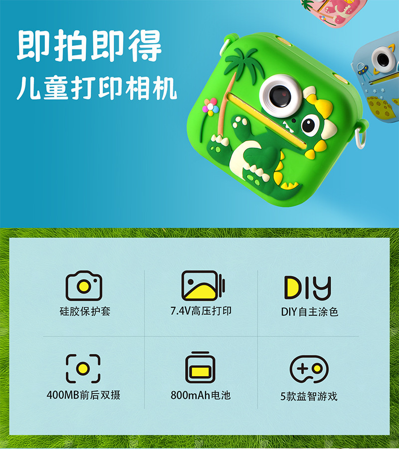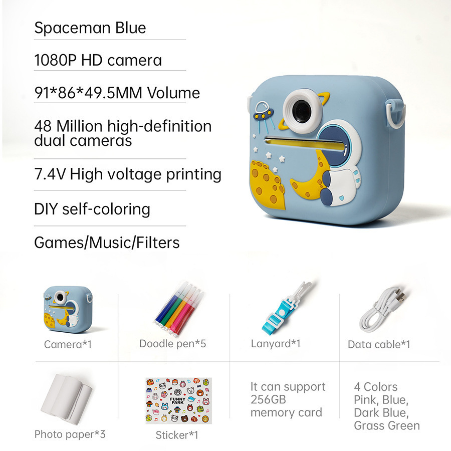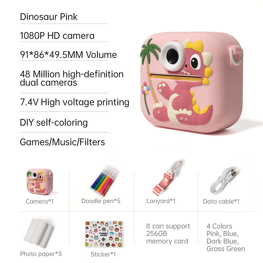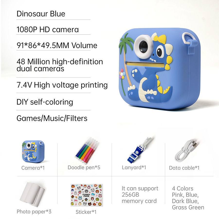 새로운 인쇄 카메라 어린이 카메라 HD 만화 비디오 듀얼 카메라 미니 장난감 어린이 디지털 사진