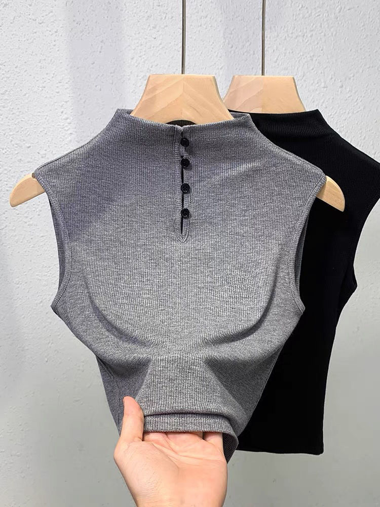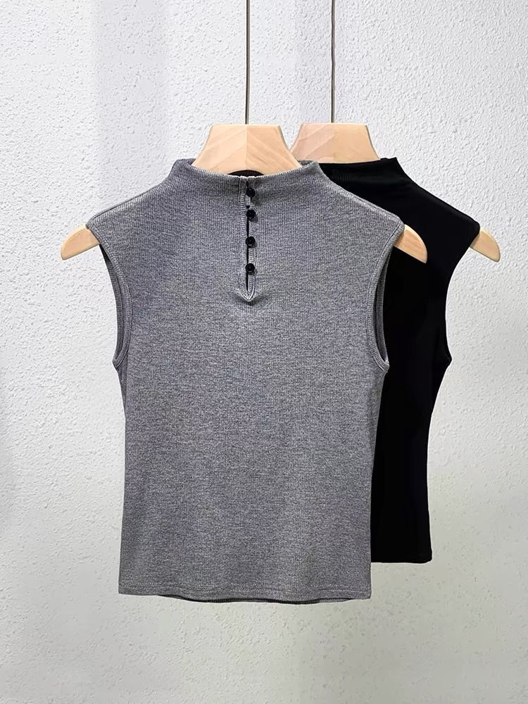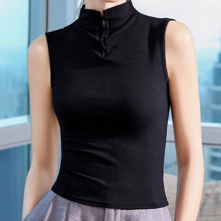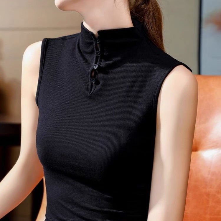 블랙 모달 민소매 티셔츠 여성용 여름 새로운 반 높이 칼라 얇은베이스 셔츠 슬림핏 슬리밍 조끼 탑