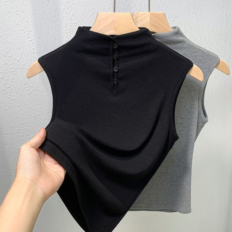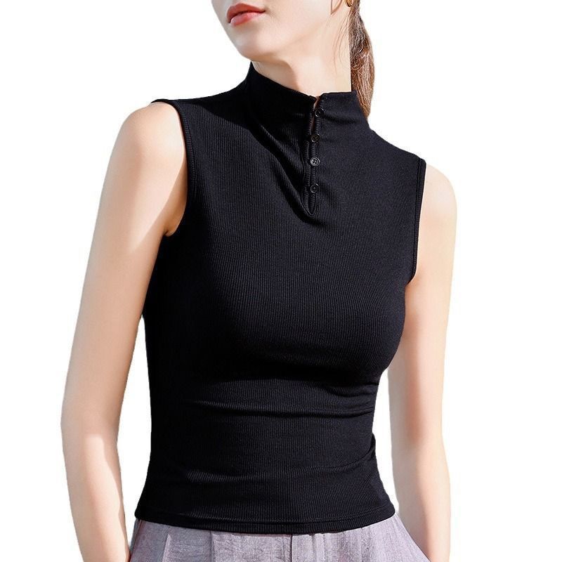 블랙 모달 민소매 티셔츠 여성용 여름 새로운 반 높이 칼라 얇은베이스 셔츠 슬림핏 슬리밍 조끼 탑스토어 가기