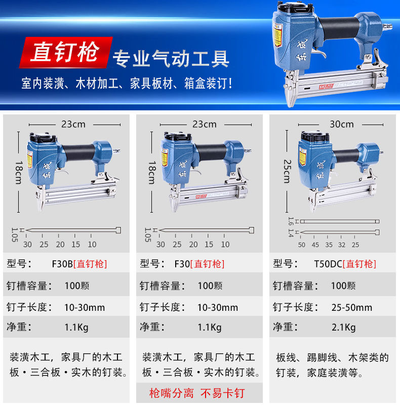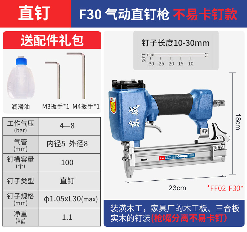• [스트레이트 네일건] FF02-F30 쉽게 끼지 않는 스타일 + 예비 부품 + 에어 파이프