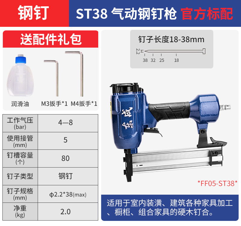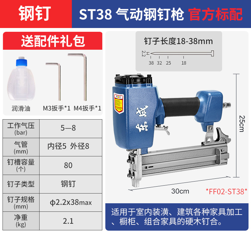 • [스틸 네일건] FF02-ST38 공식 표준 + 예비 부품 + 에어 파이프