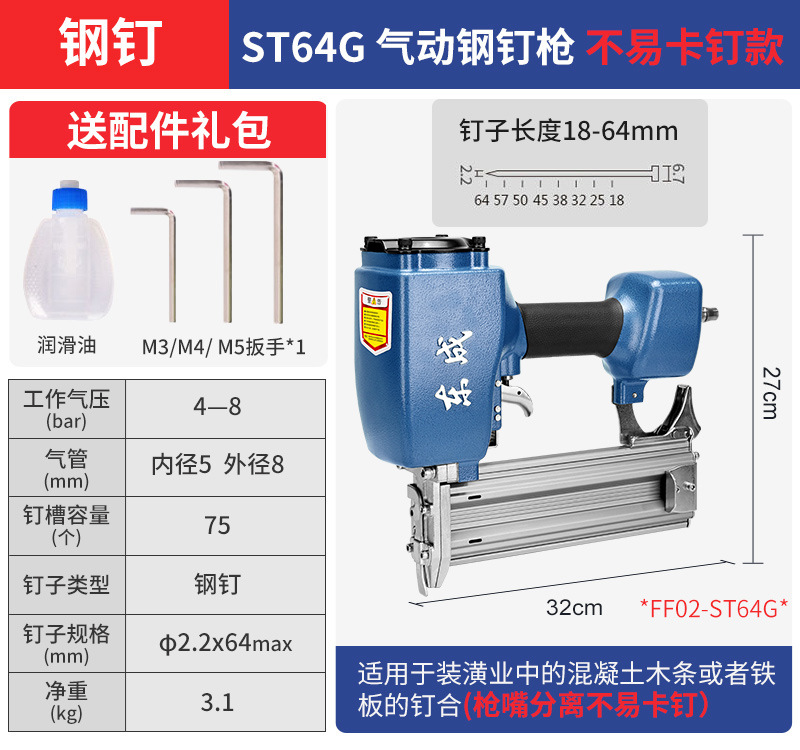 • [스틸 네일건] [무료 장갑] FF03-ST64C 스탠다드 모델