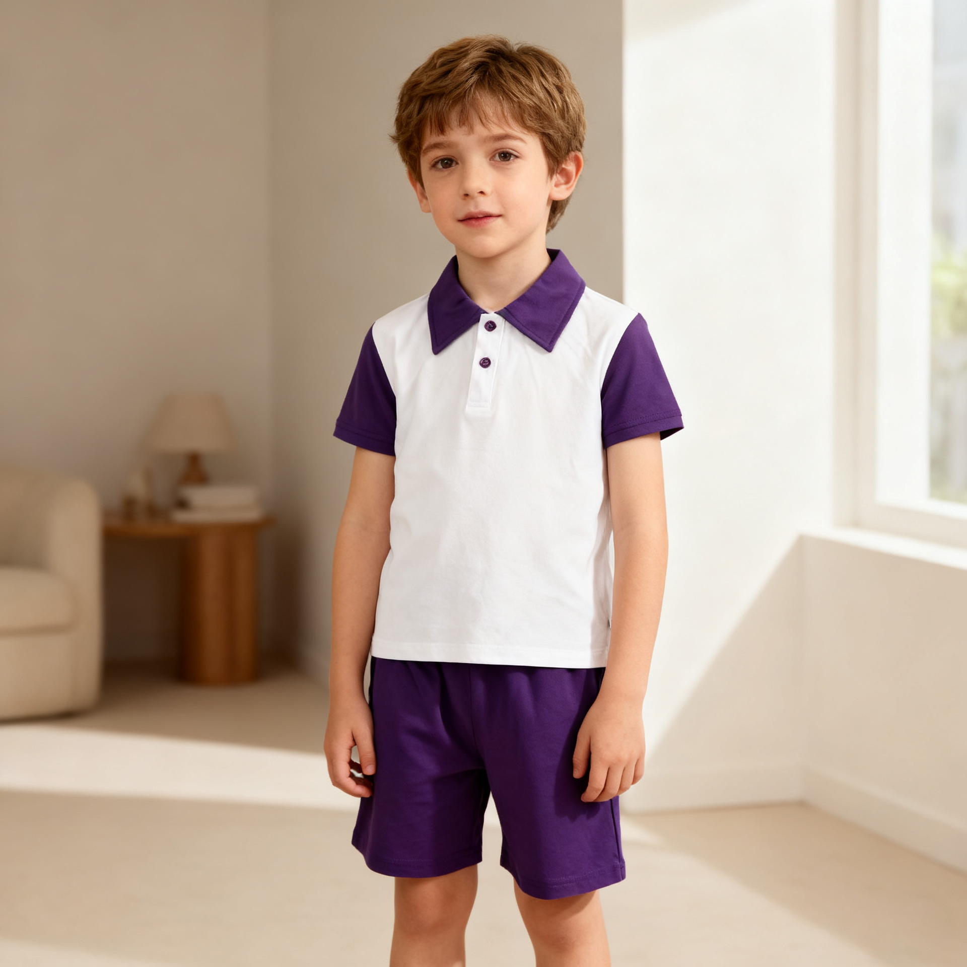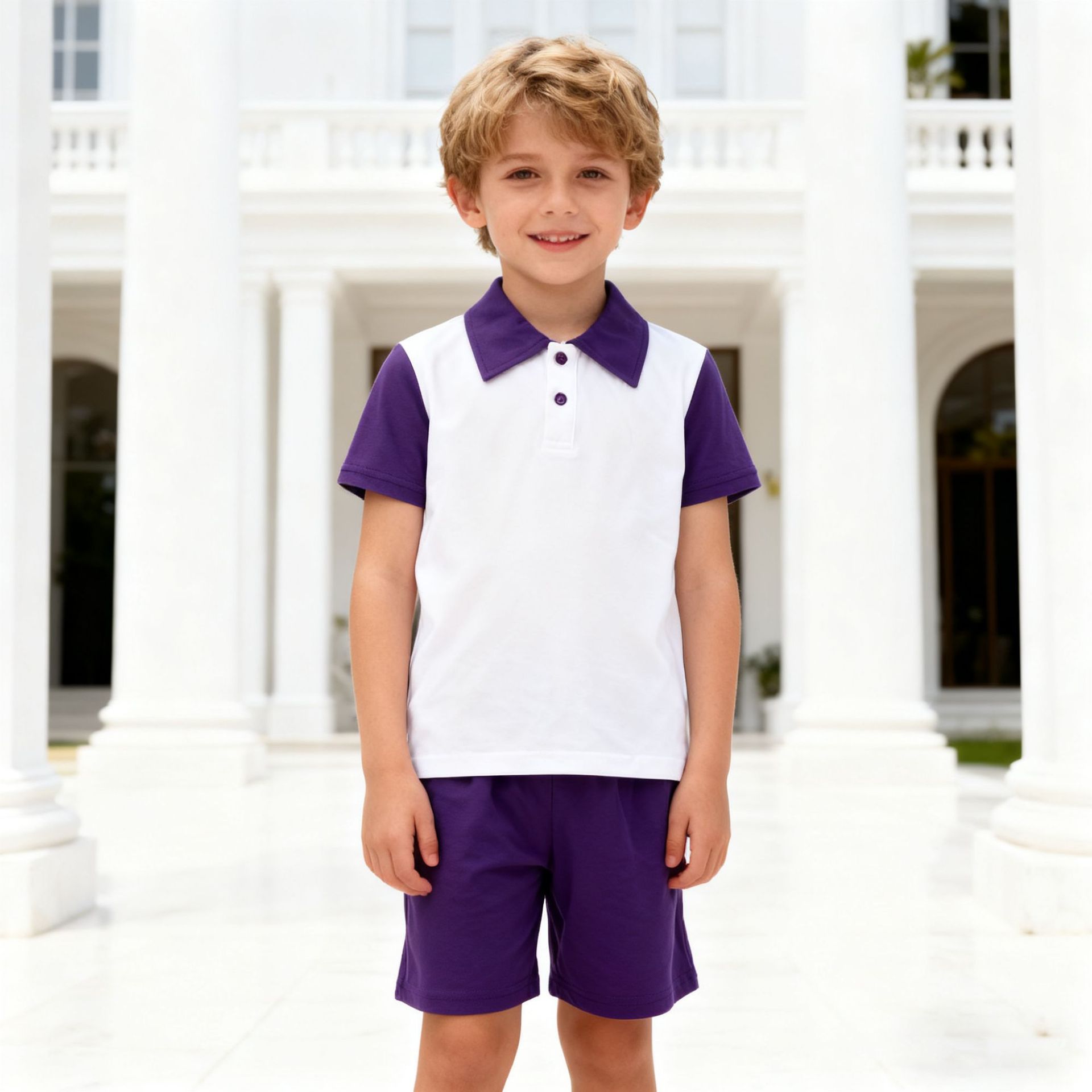 남아 여름 단색 폴로 셔츠 니트 반바지 2피스 스포츠 세트 순면