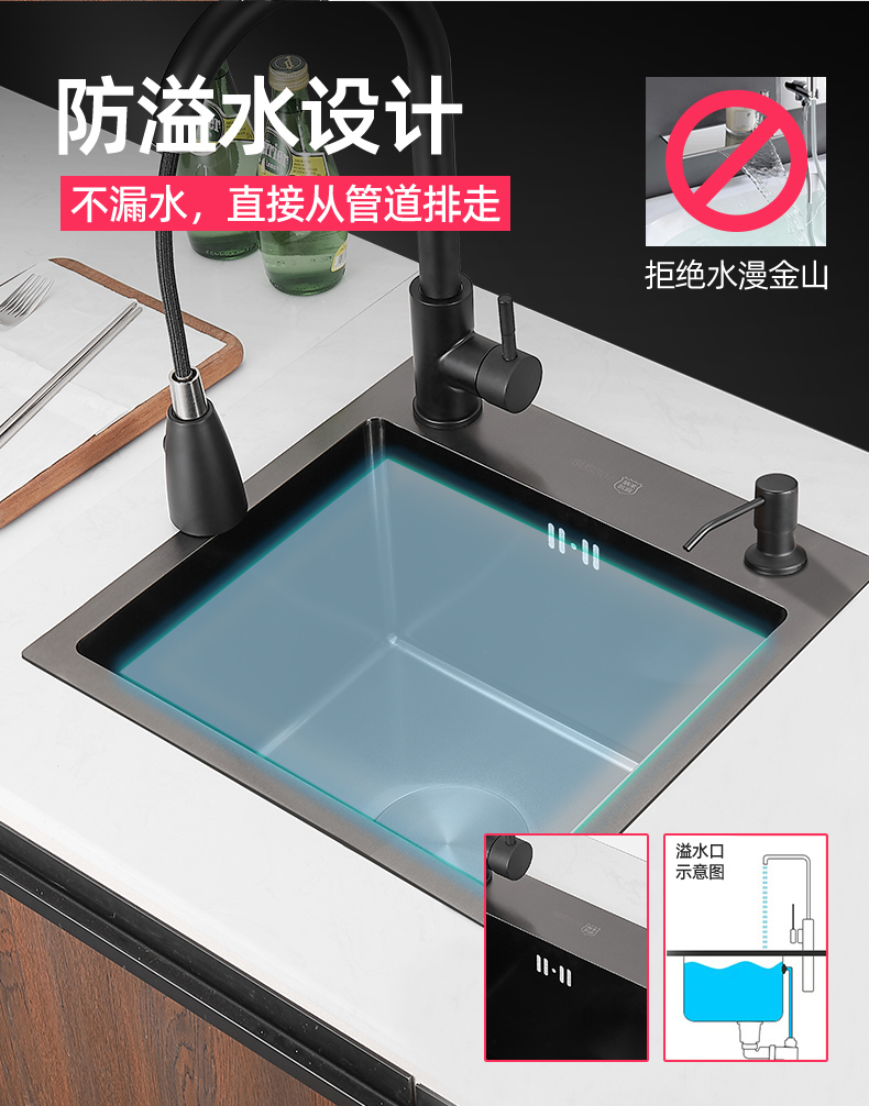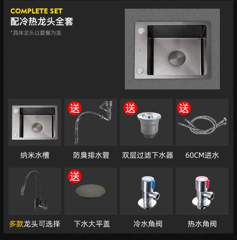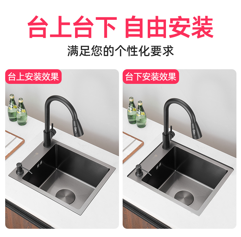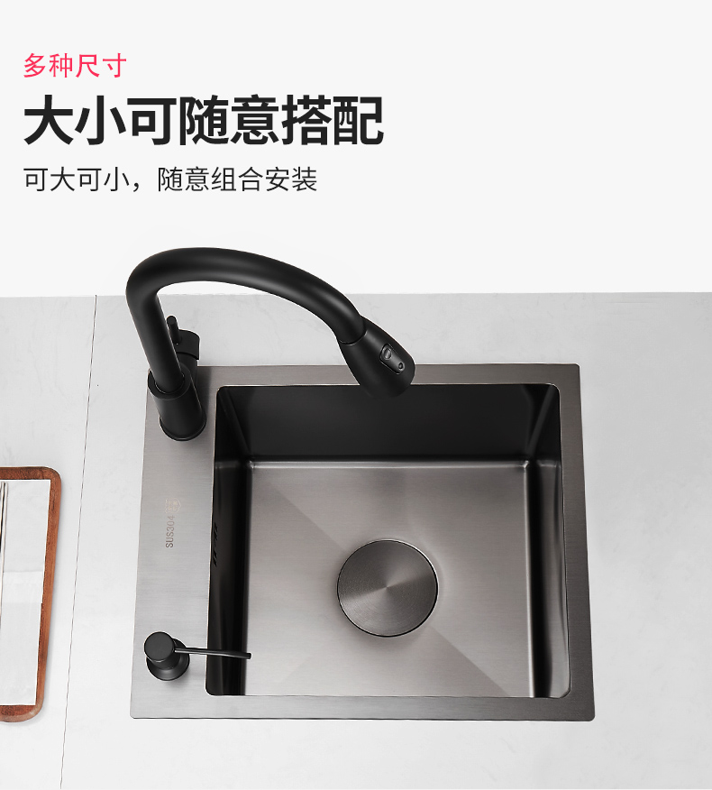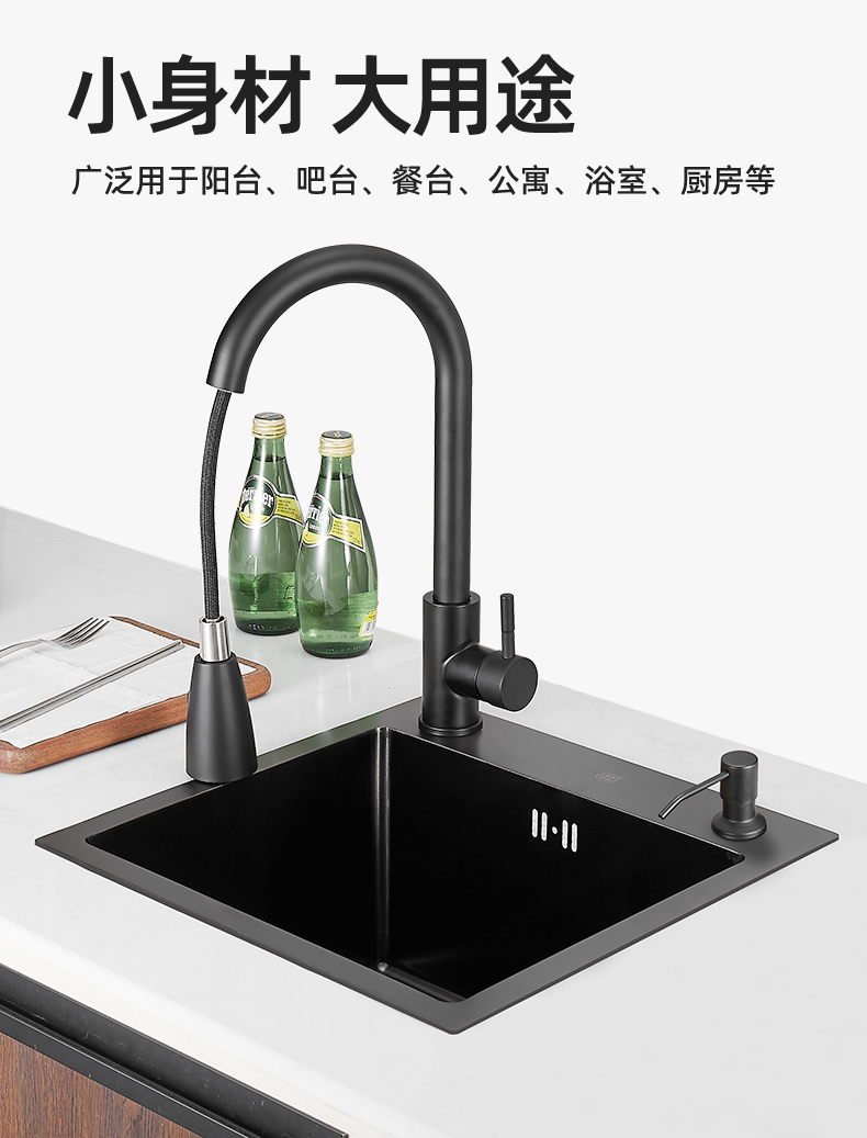 ✅나노 블랙 304 스테인레스 스틸 핸드 메이드 사이드 싱크 싱글 싱크 주방 스몰 사이즈 발코니 바 미니 접시 세척스토어 가기