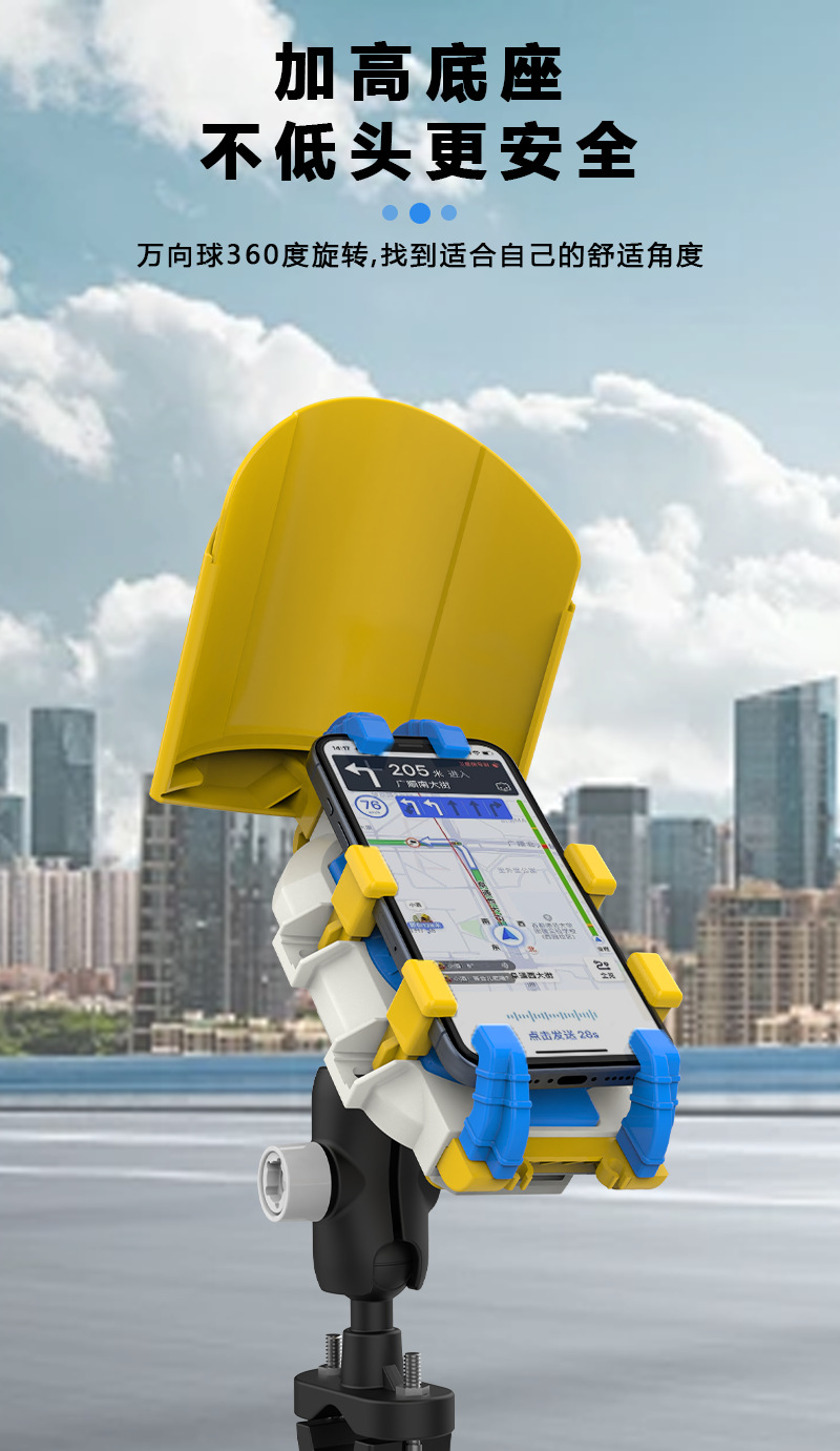 오토바이 전기 자동차 휴대 전화 브래킷 충격 흡수 도난 방지 전체 보호 오토바이 휴대 전화 브래킷 태양 모자스토어 가기
