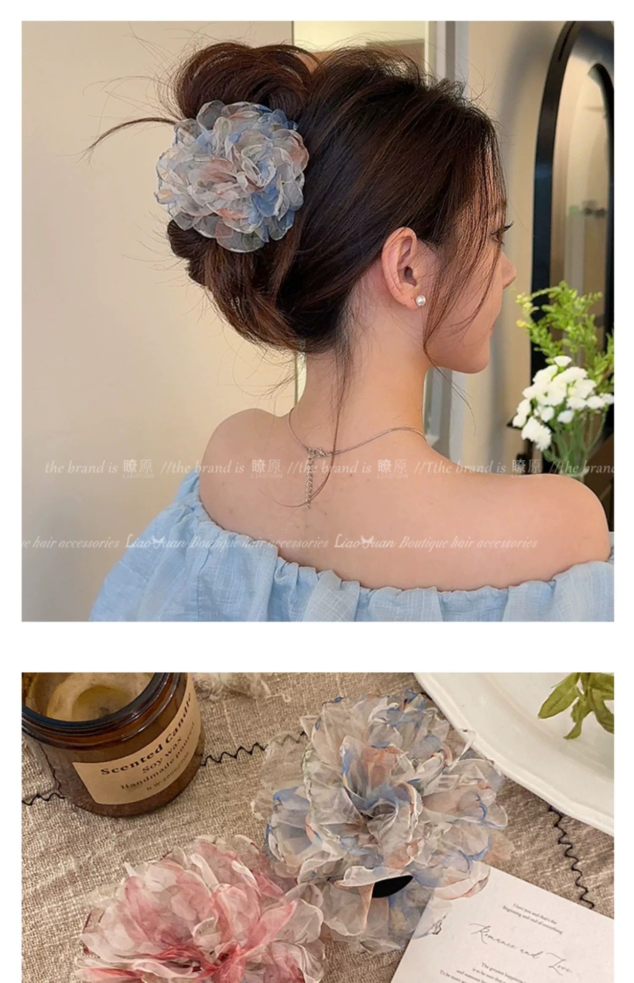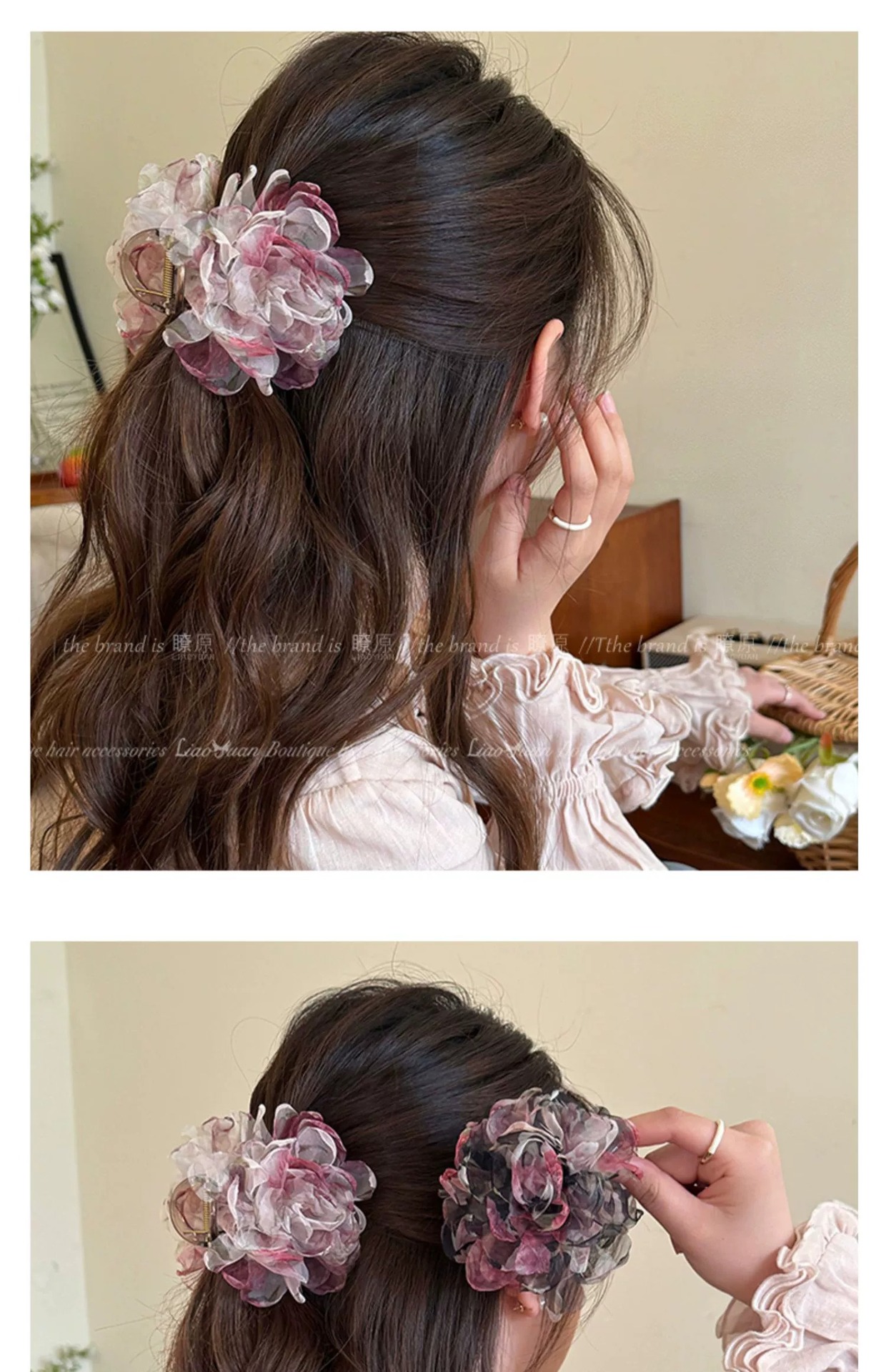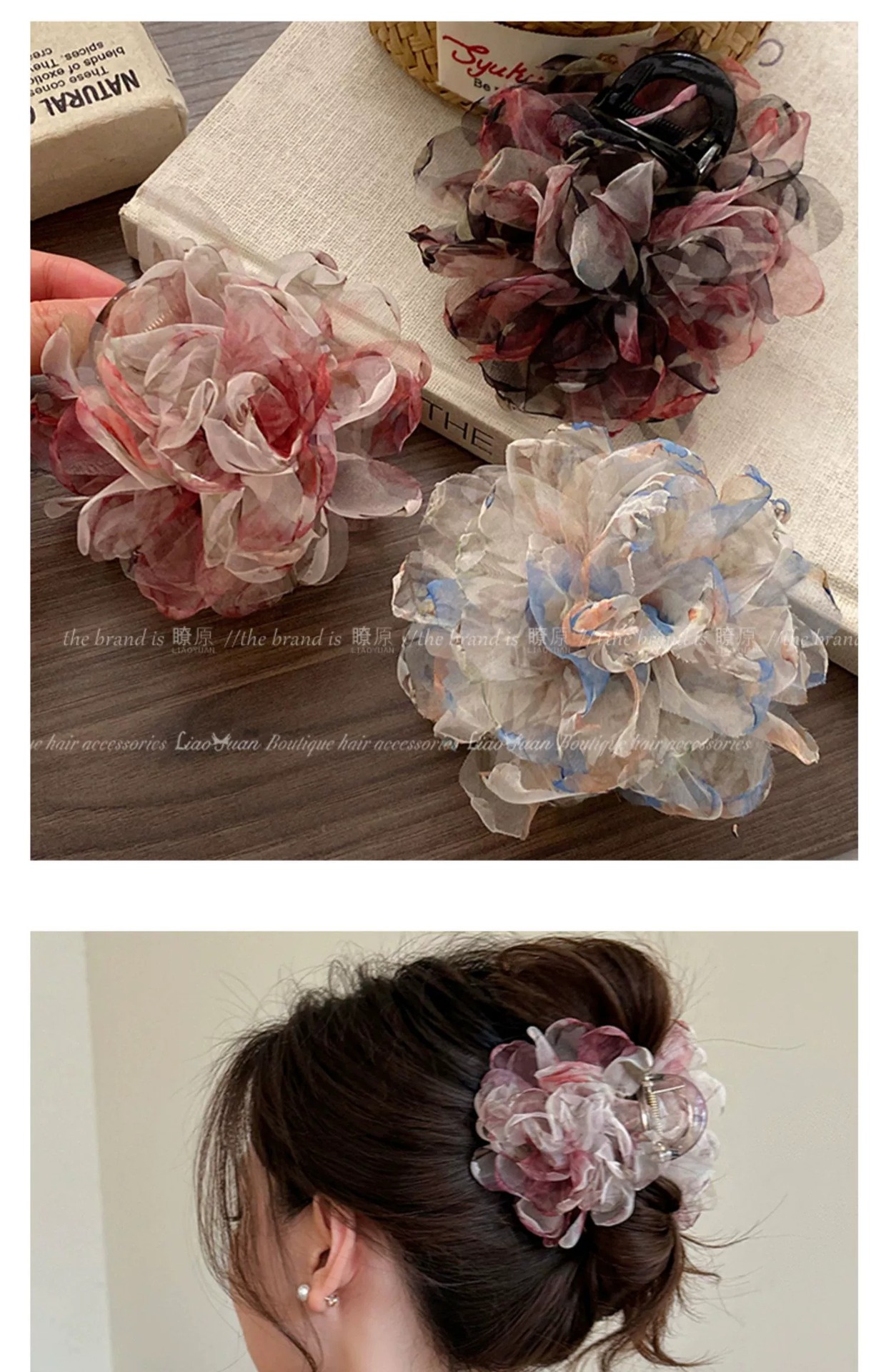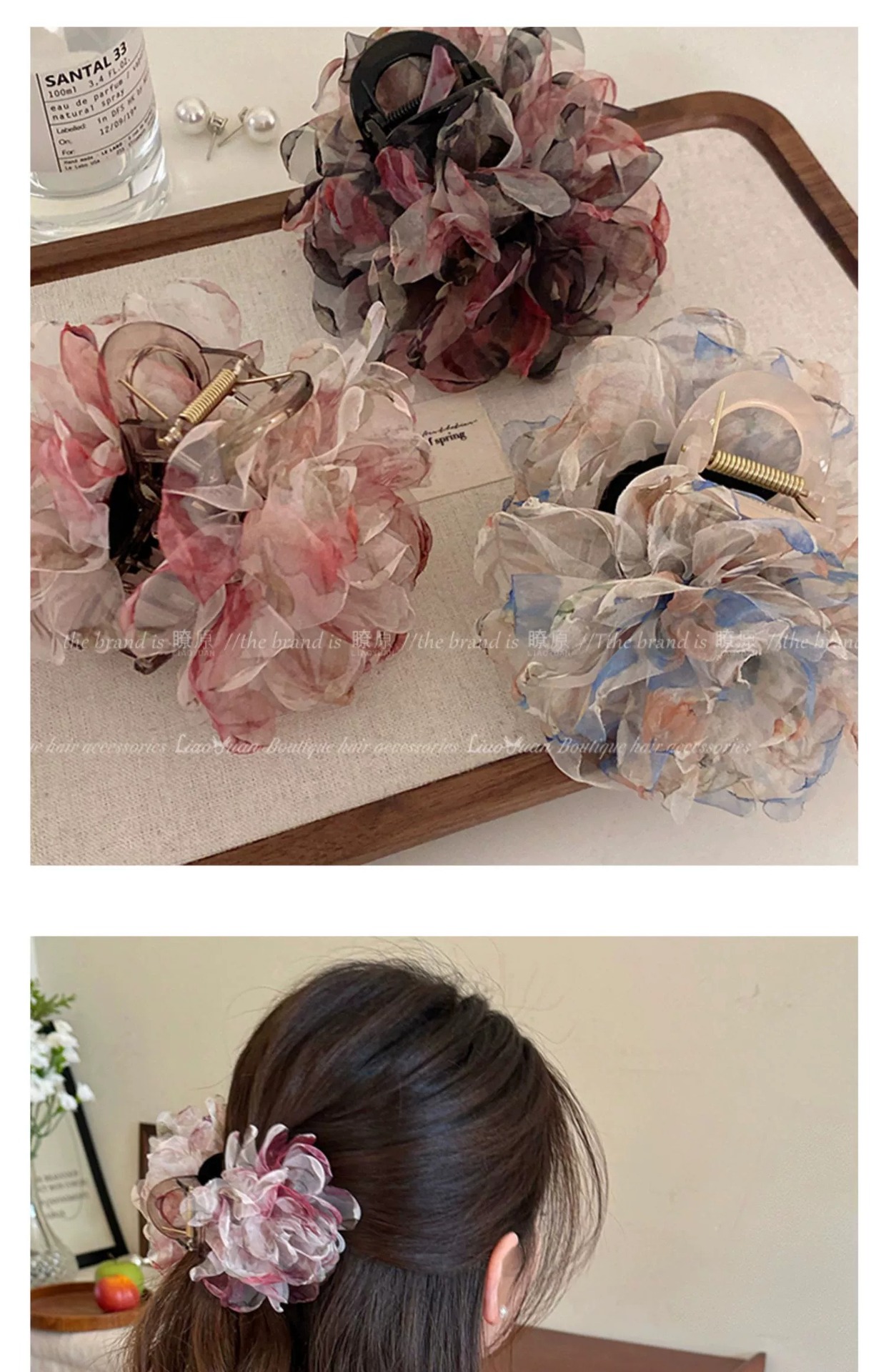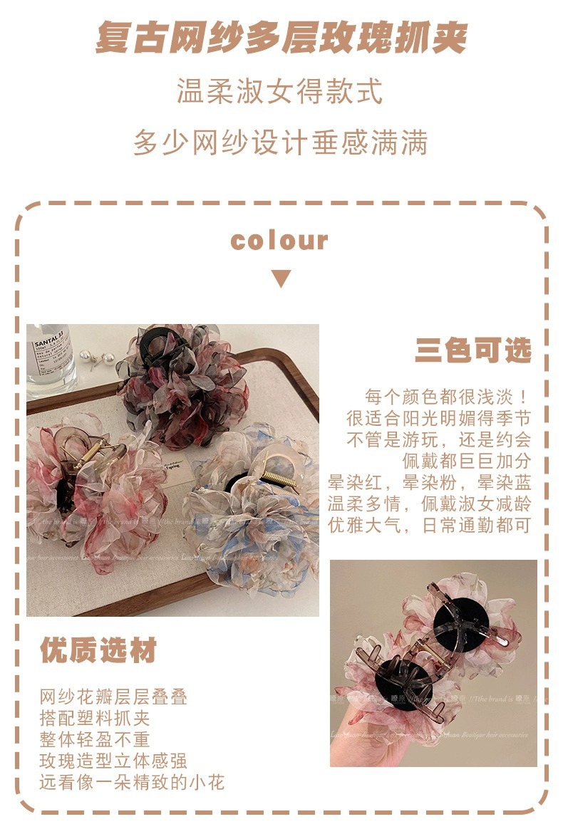 슈퍼 페어리 유화 향기 꽃 헤어핀 여성의 머리 뒤 우아한 잡아 클립 2025 새로운 하이 엔드 레트로 상어 클립스토어 가기