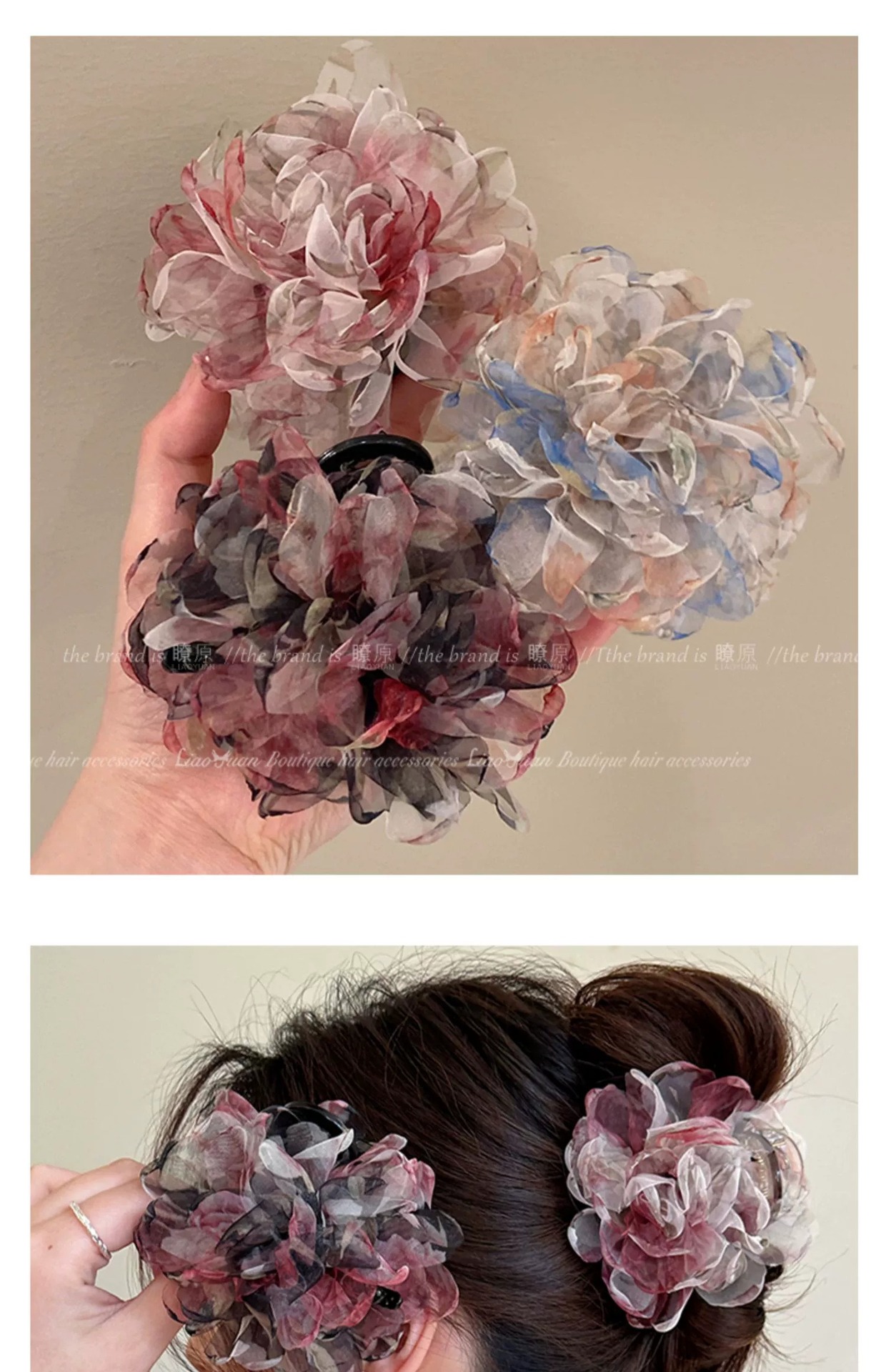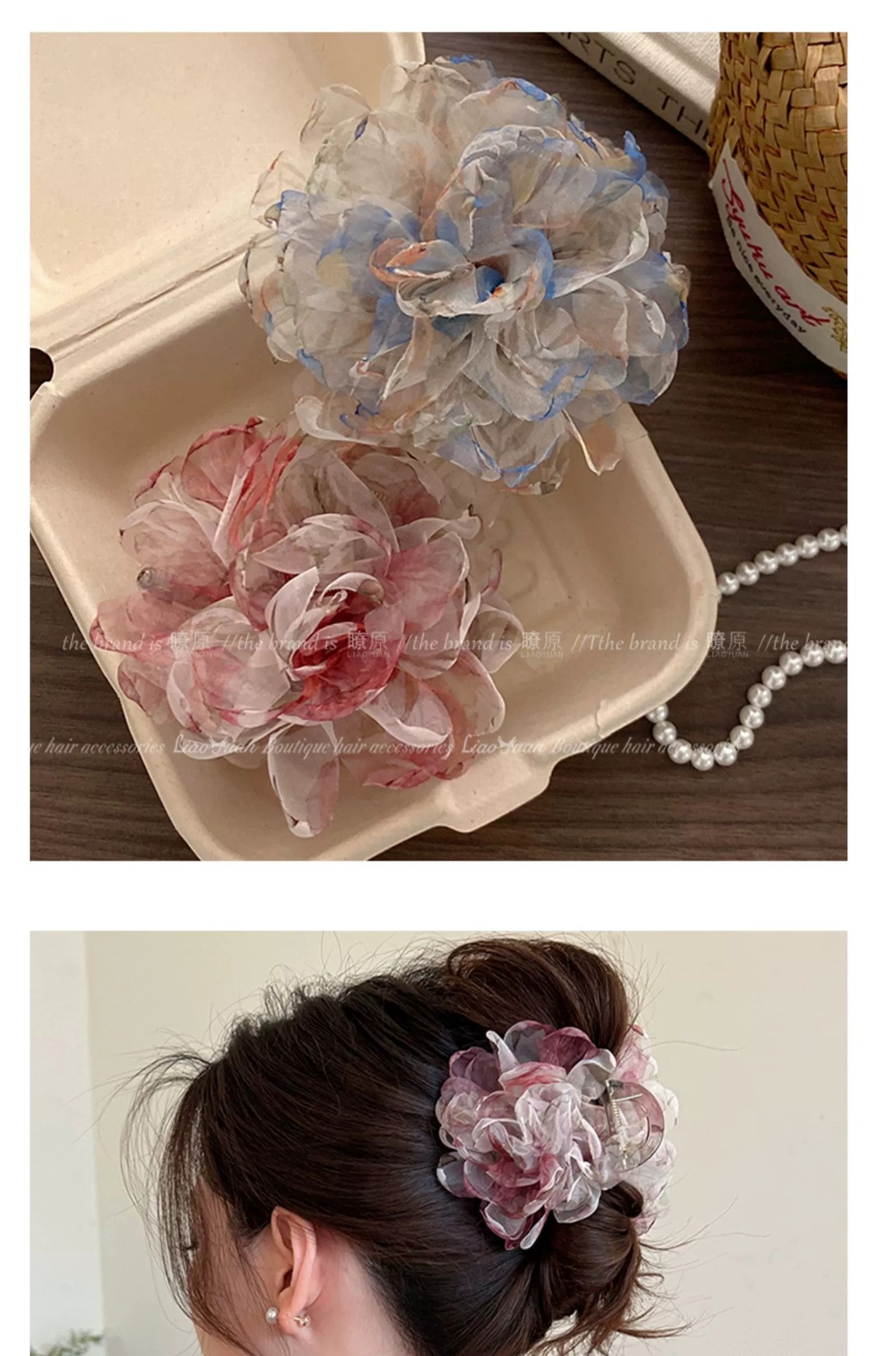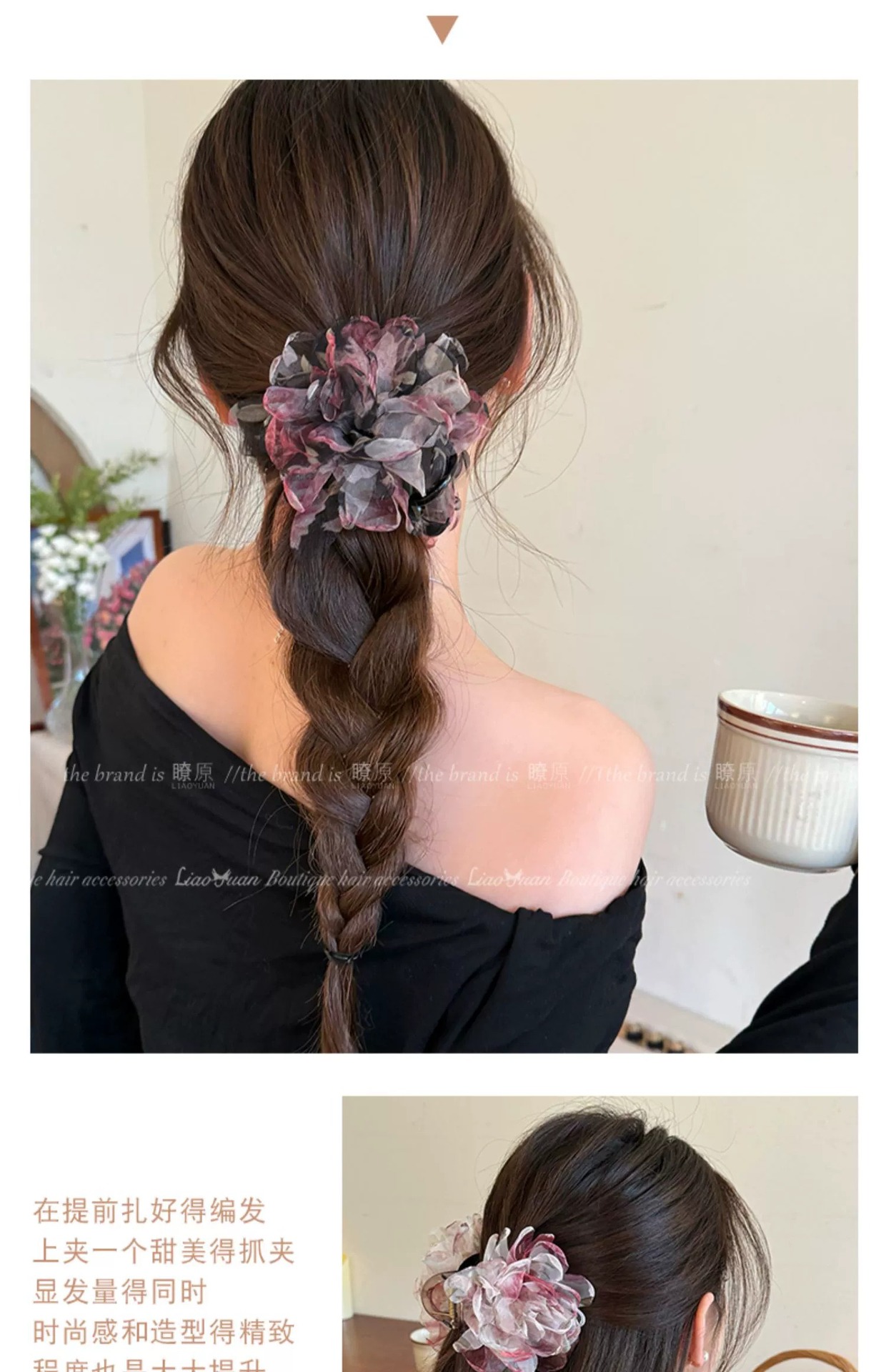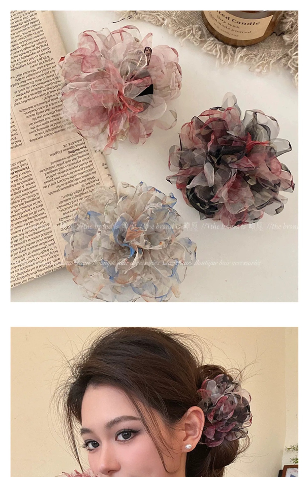 슈퍼 페어리 유화 향기 꽃 헤어핀 여성의 머리 뒤 우아한 잡아 클립 2025 새로운 하이 엔드 레트로 상어 클립스토어 가기