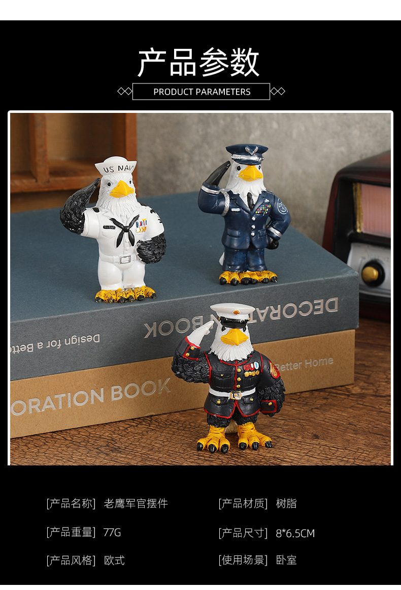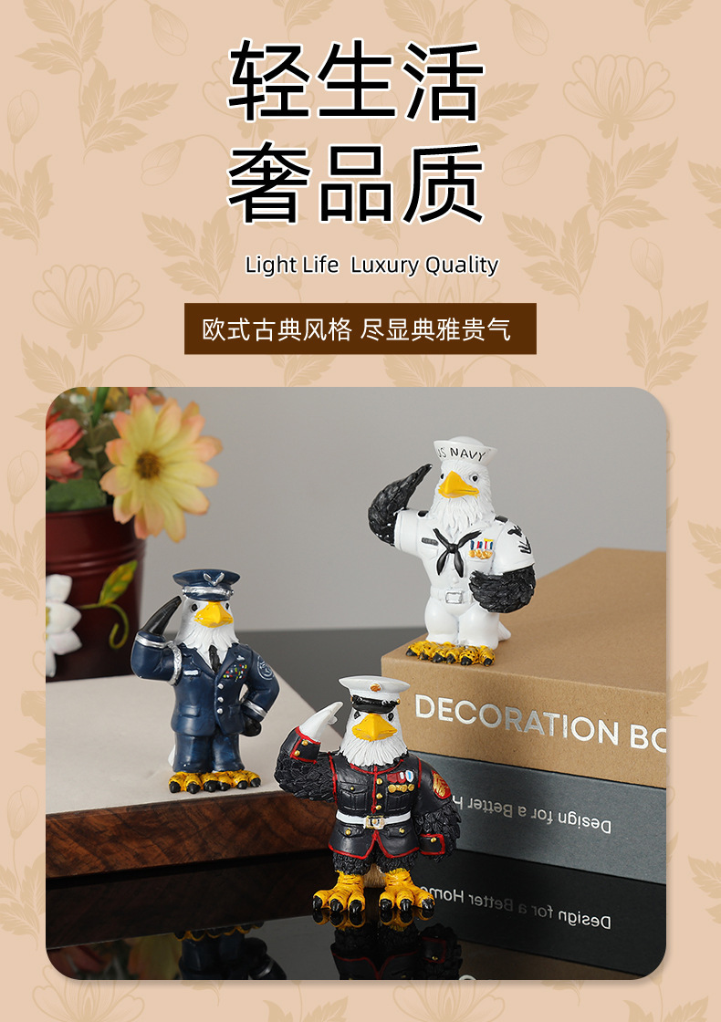 독특한 모양 독수리 장교 장식품 장식 디자인 독수리 장식품 수지 공예 창조적 인 장식품 도매스토어 가기