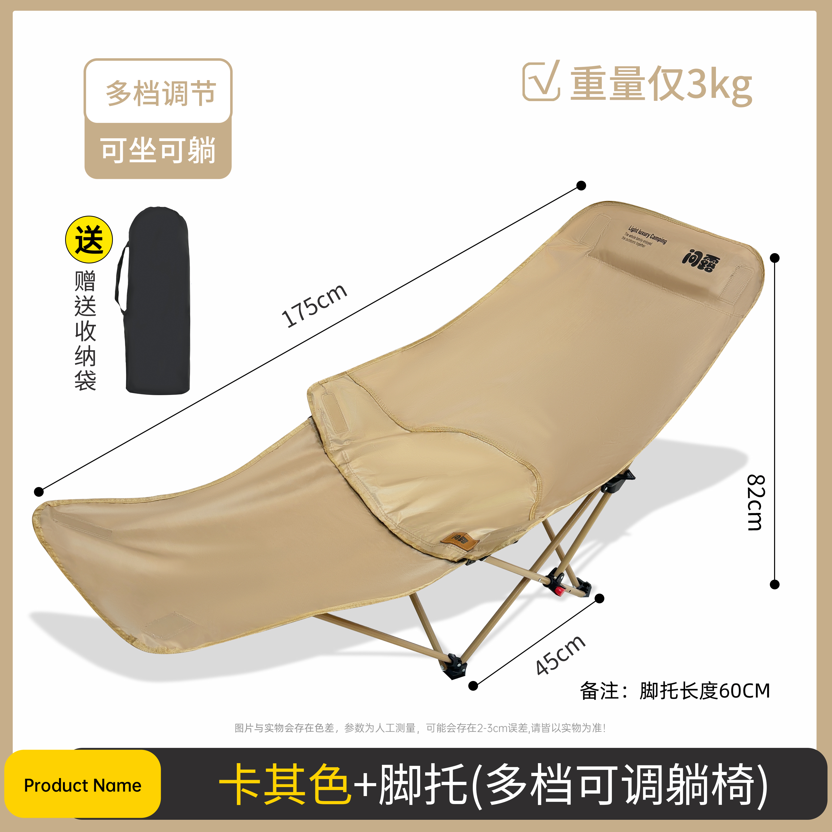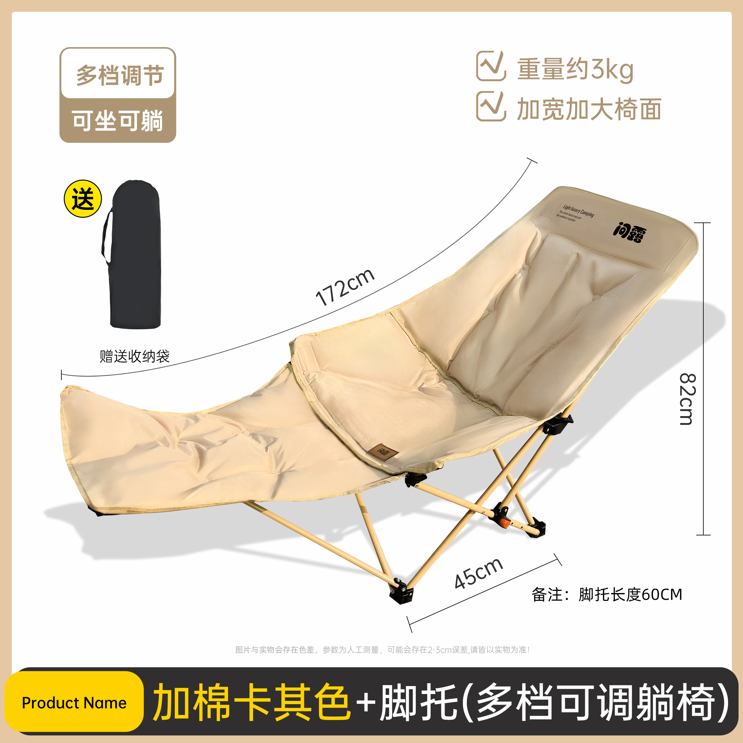 • 问露带脚拖多档调节躺椅—加棉卡其色