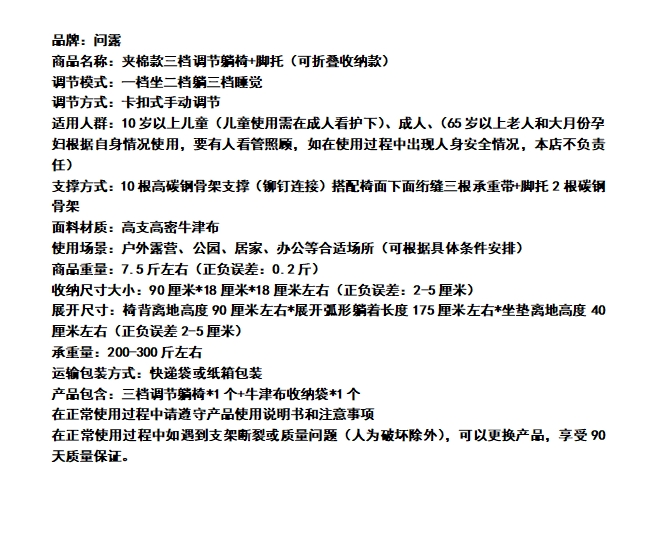 • 问露带脚拖多档调节躺椅—加棉黑色