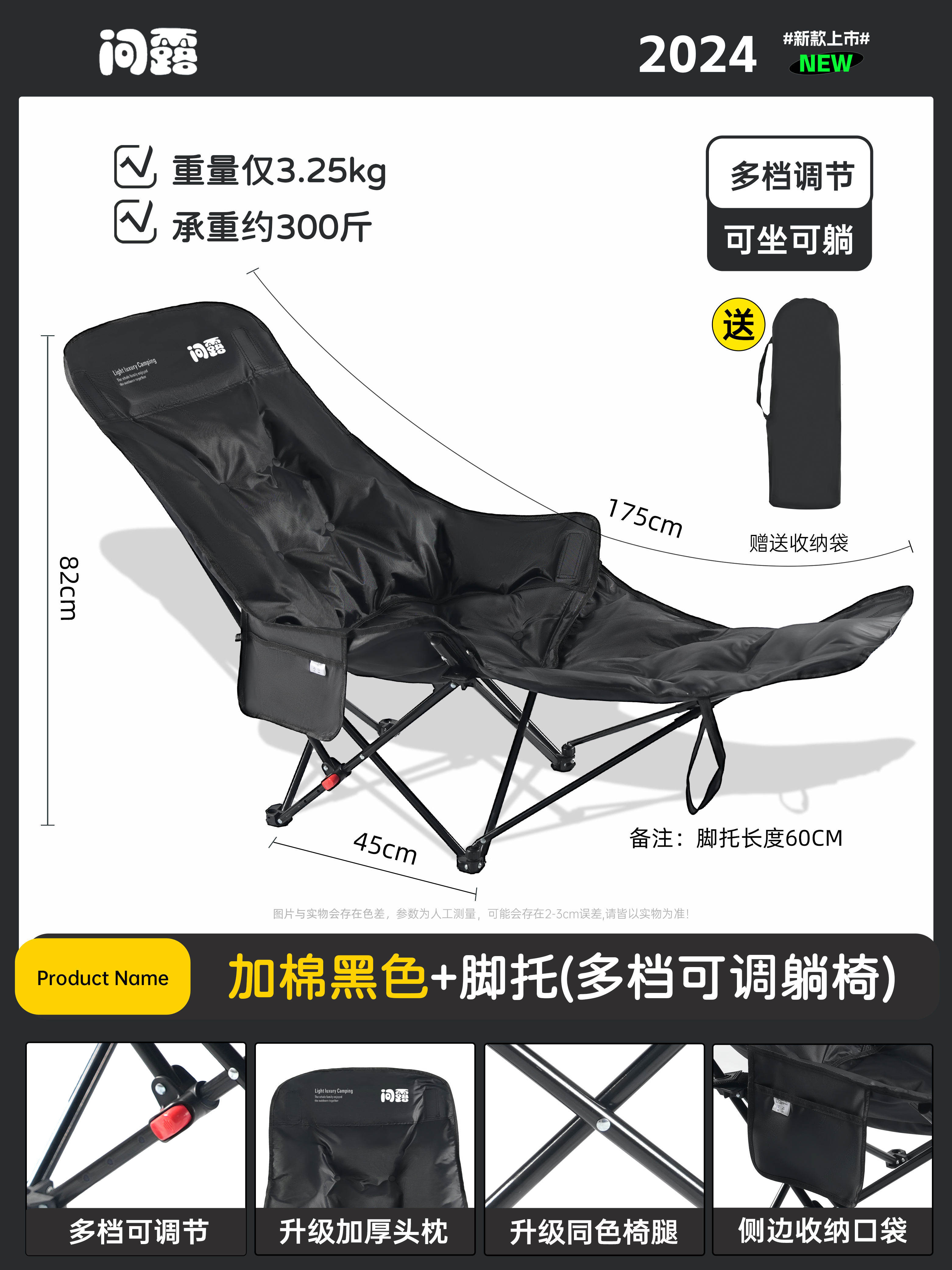 问露加棉月亮椅调节可躺露营椅躺椅午休户外椅子凳子椅椅折叠户外스토어 가기