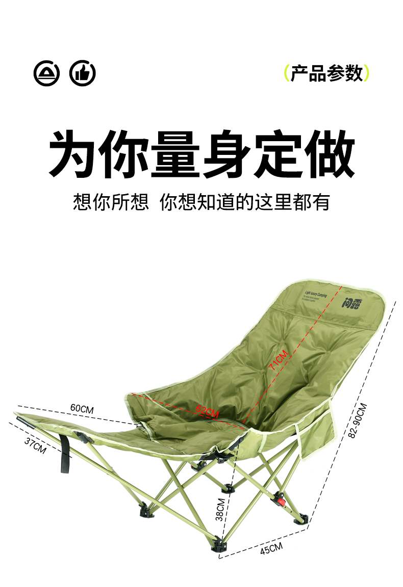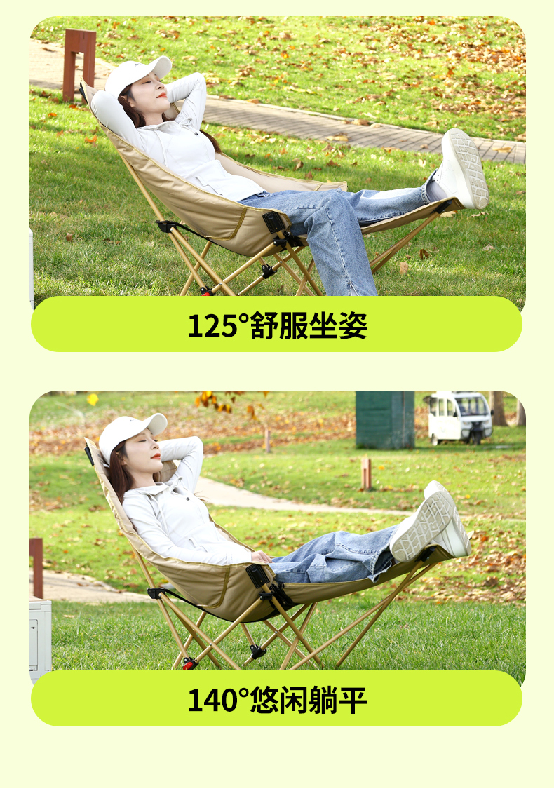 问露加棉月亮椅调节可躺露营椅躺椅午休户外椅子凳子椅椅折叠户外