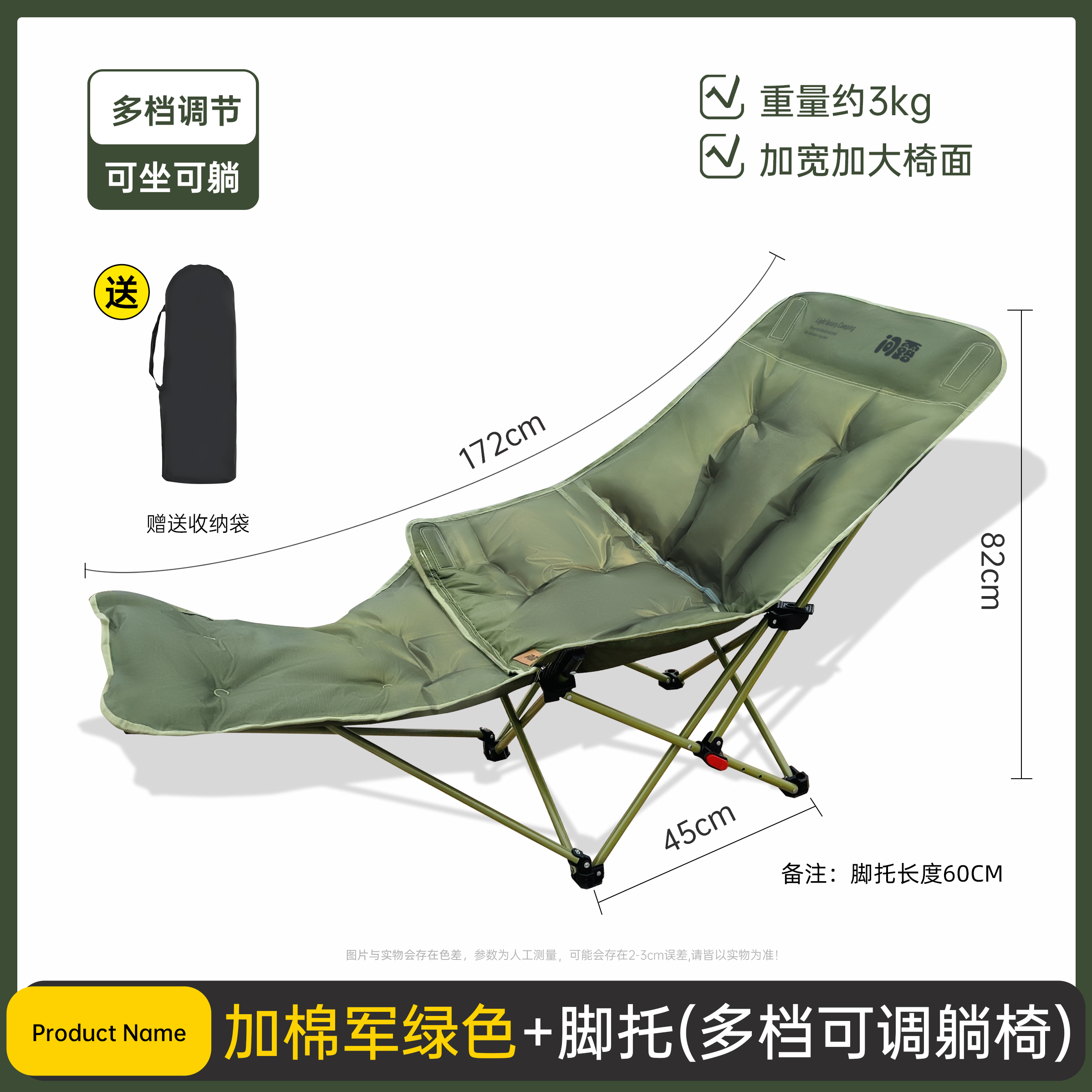 • 问露带脚拖多档调节躺椅—加棉军绿色
