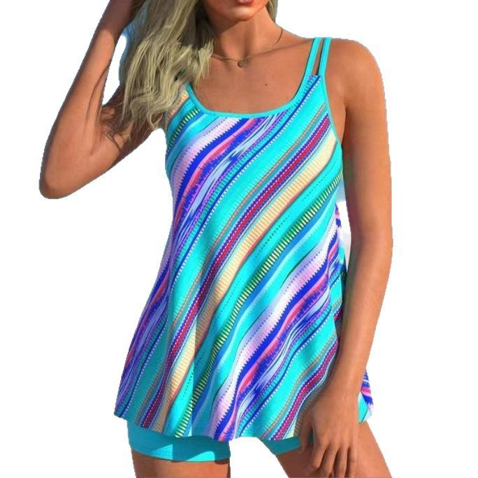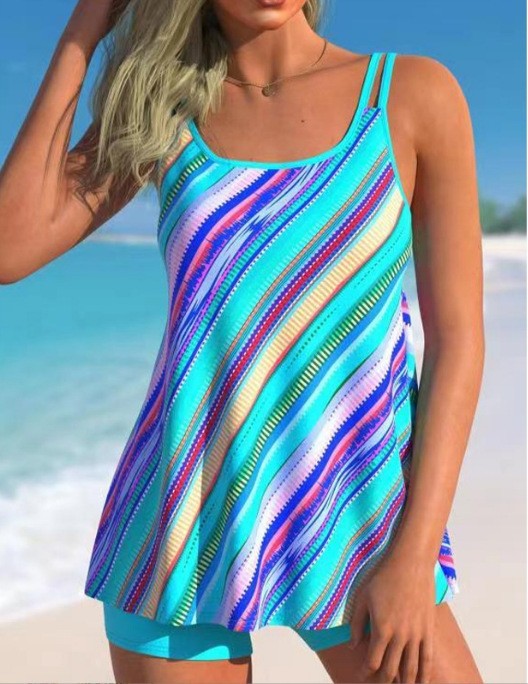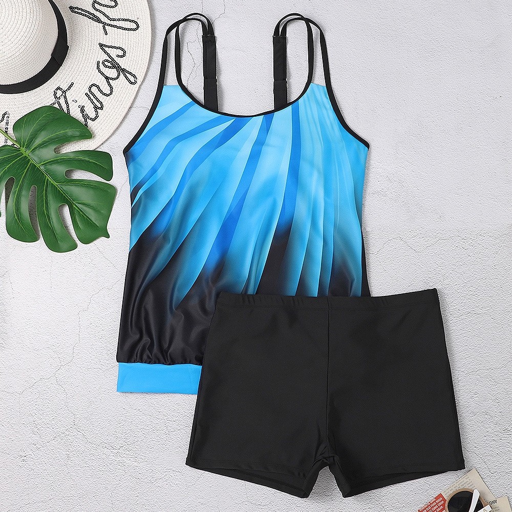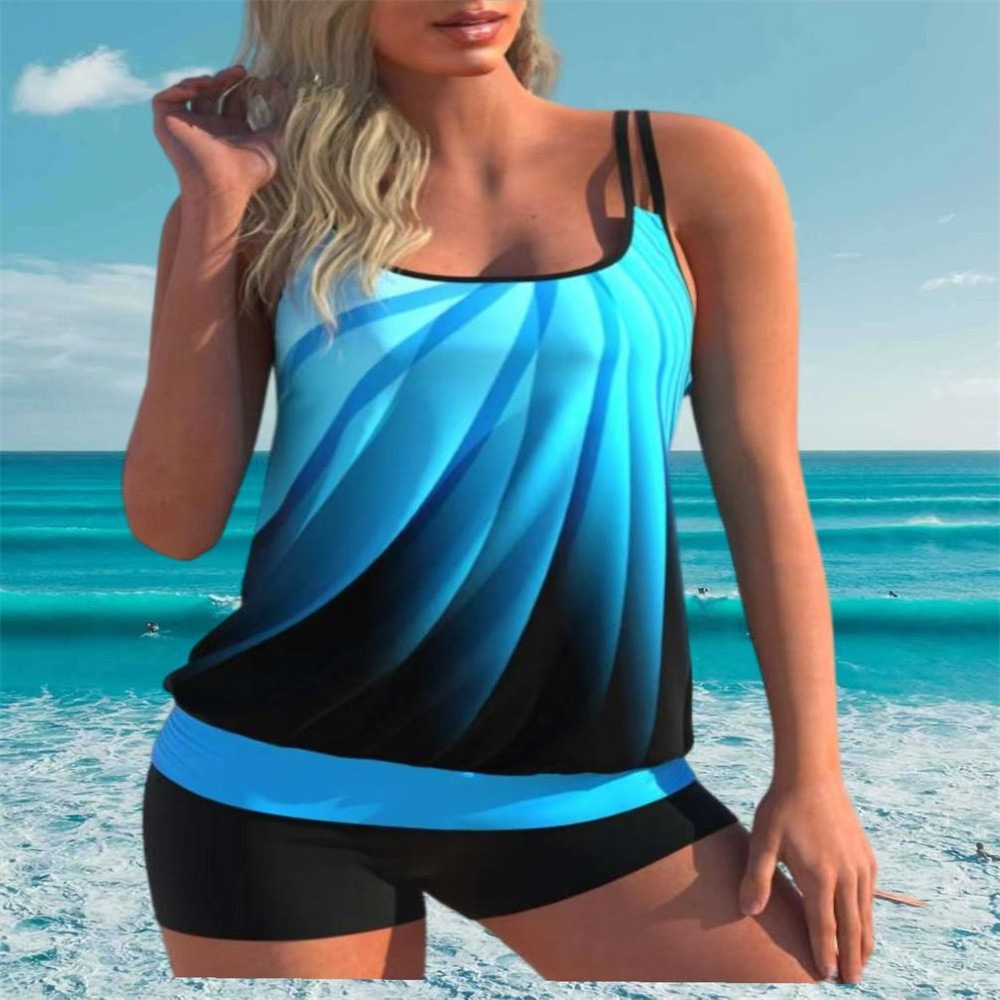 2024년 크로스보더 유럽 및 미국 대외 무역 새로운 디지털 프린트 하이넥 푸시업 플리츠 아마존 타니키 스플릿 수영복스토어 가기