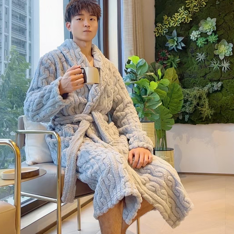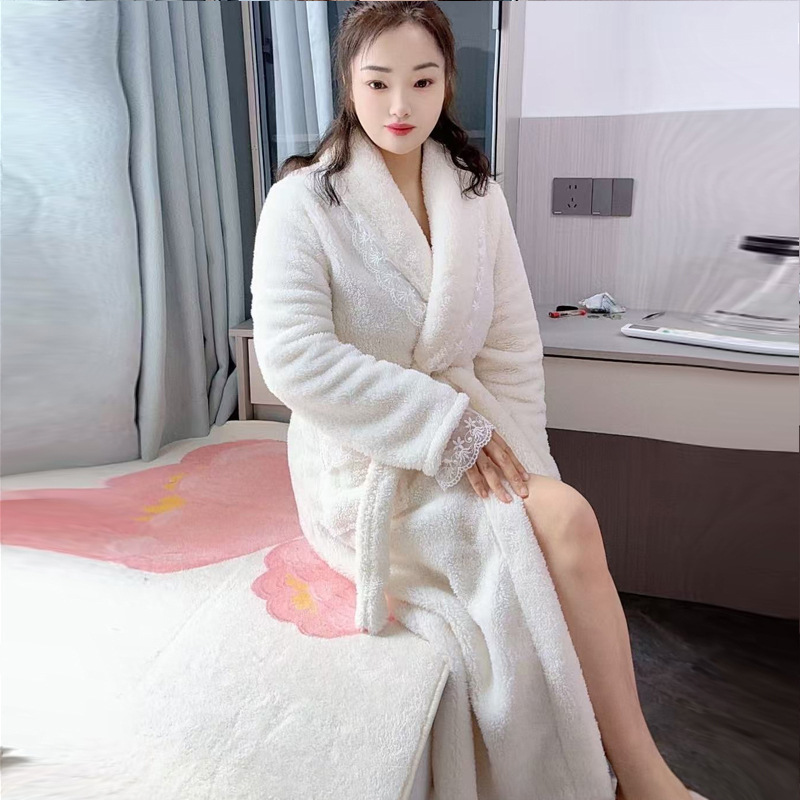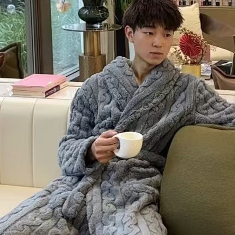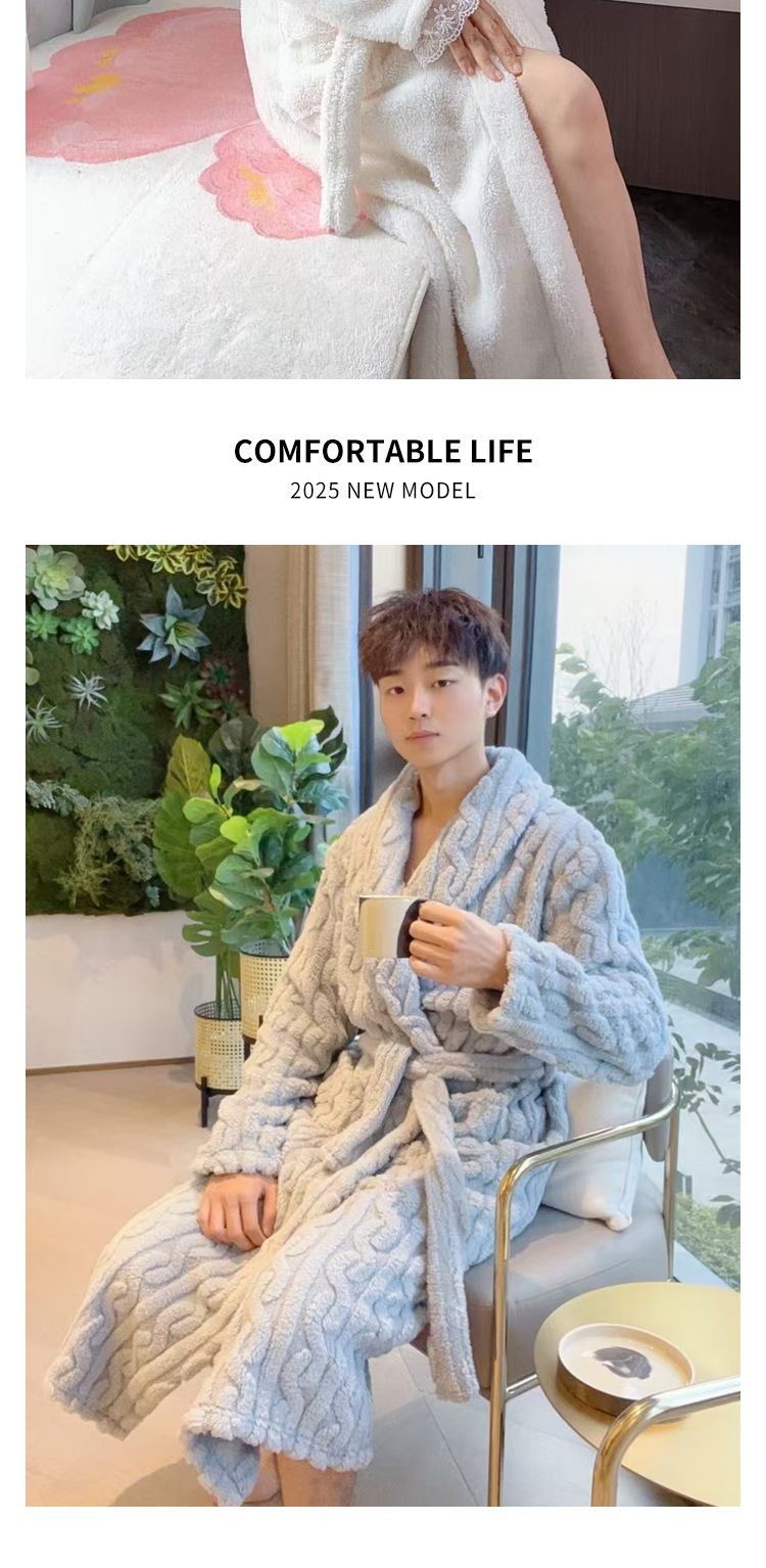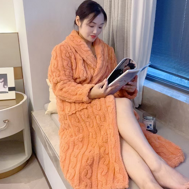 여성용 잠옷 가을, 겨울 플란넬 두꺼운 커플 산호 벨벳 잠옷 겨울 플러스 벨벳 새로운 목욕 가운 남성용 목욕 가운스토어 가기